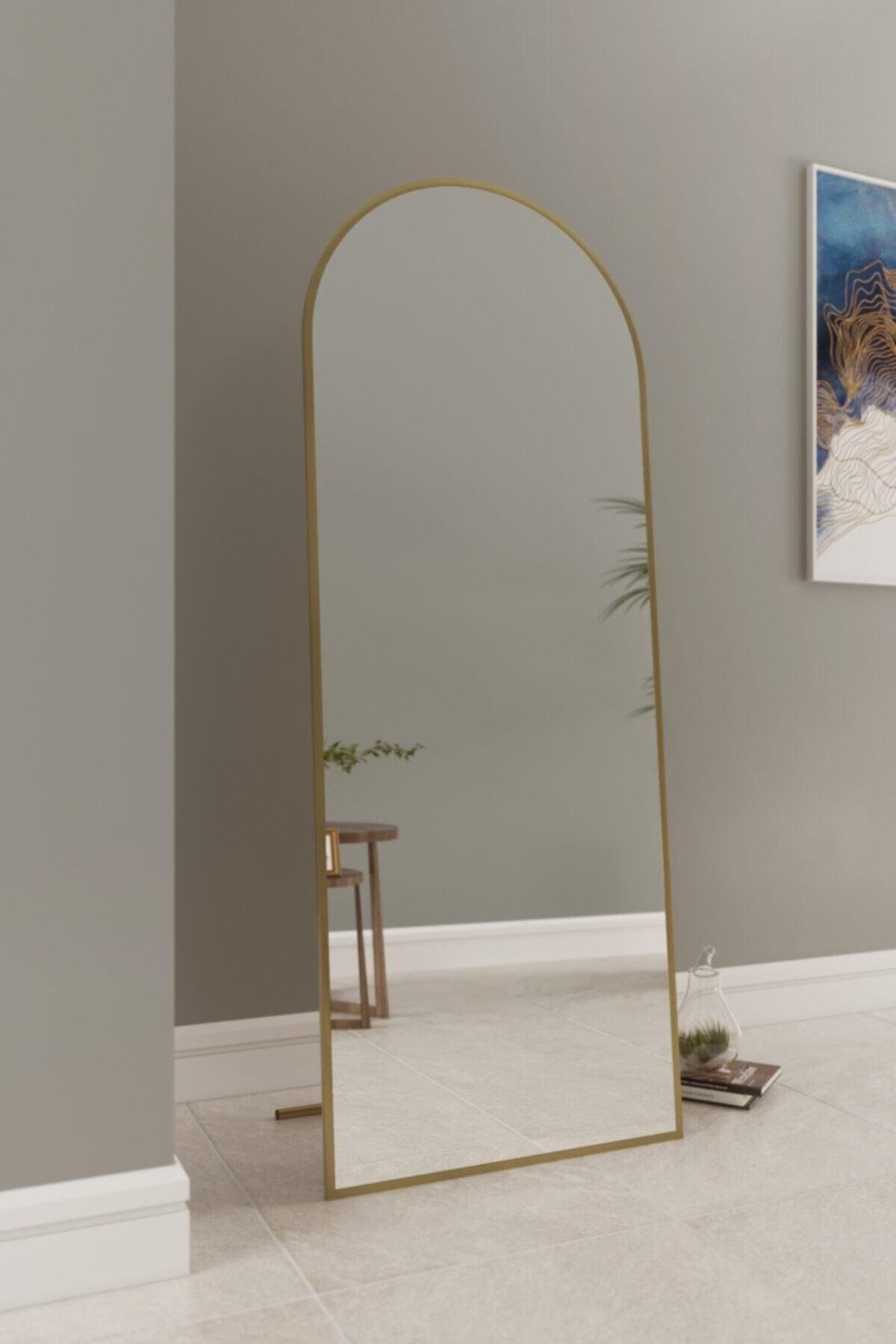 مرآة بيضاوية بطول 180 × 70 سم بإطار معدني ذهبي