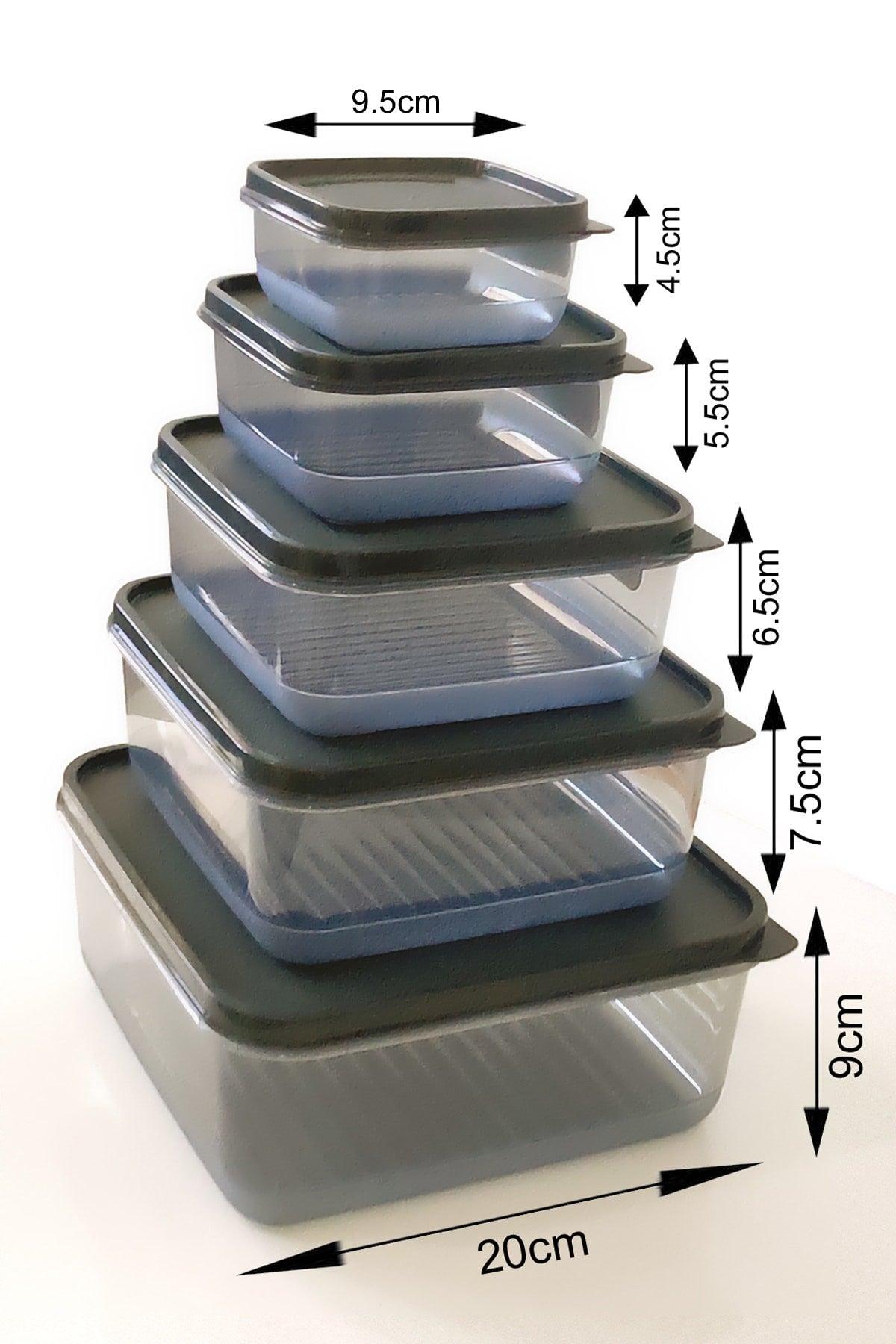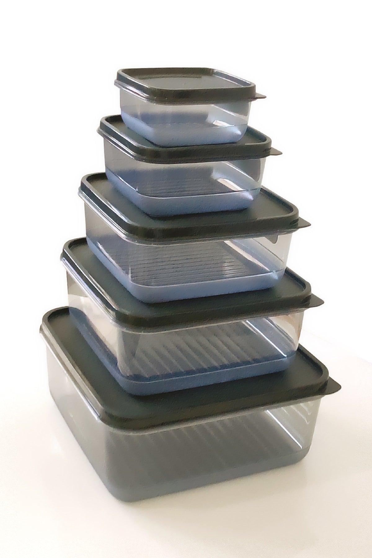 مجموعة من 5 أوعية تخزين شفافة مربعة حافظة طعام بقوليات أنثراسايت