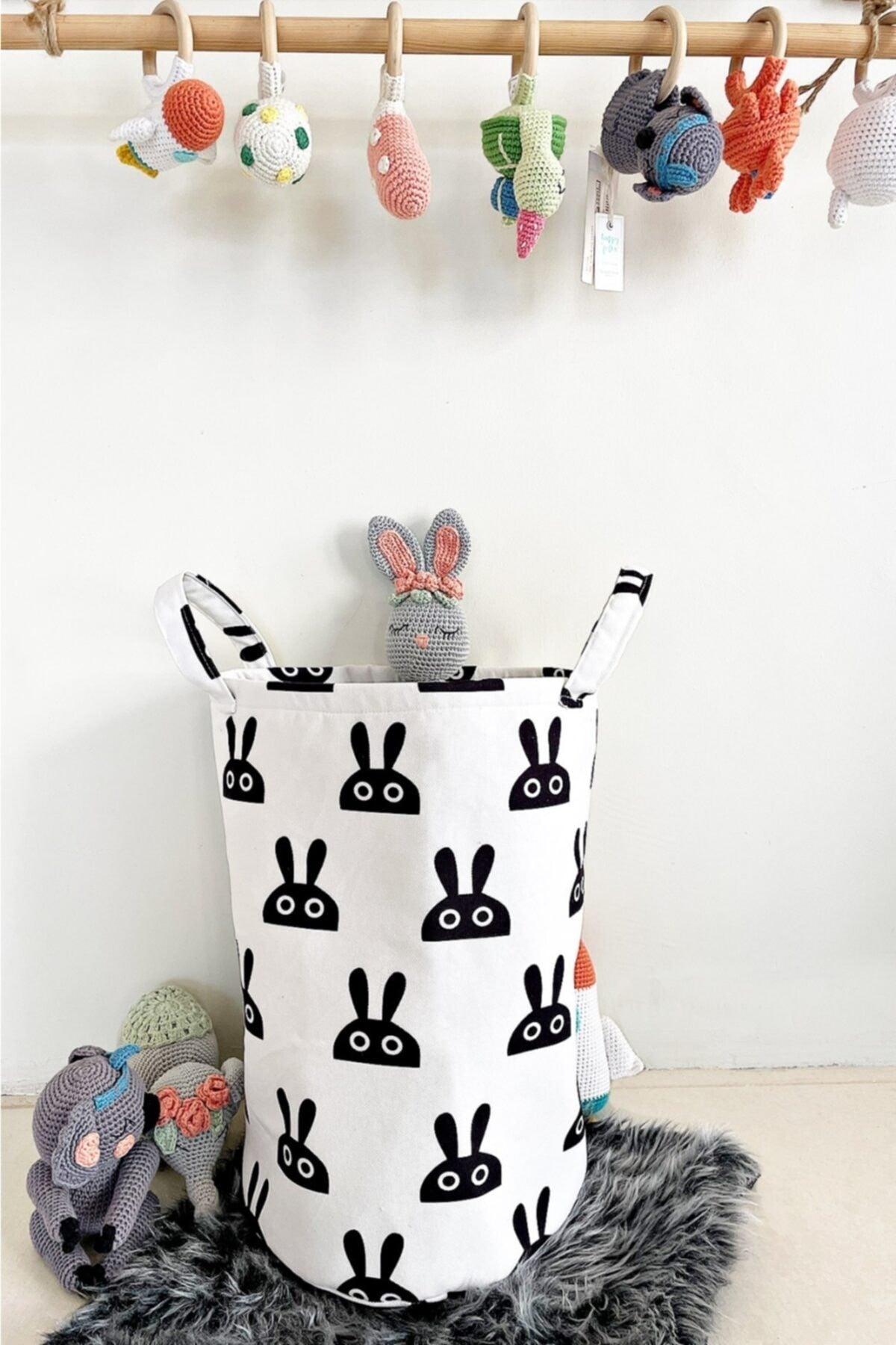 لعبة أطفال من القطن العضوي وسلة غسيل - وردي اللون منقط بأرنب بولكا