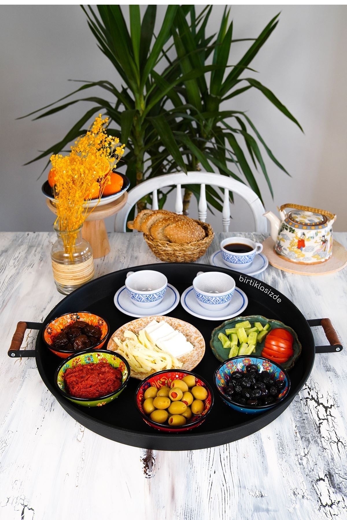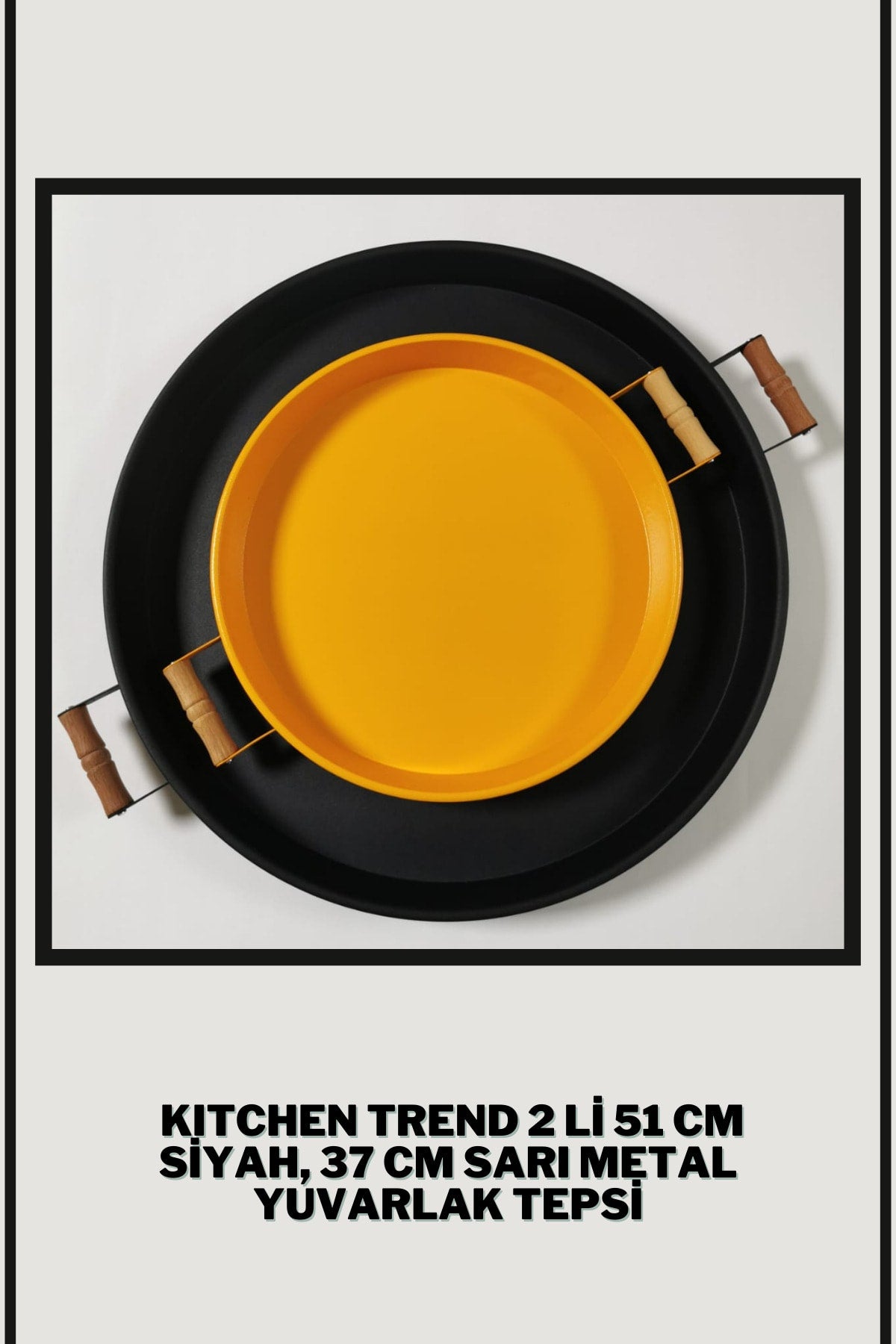 صينية تقديم دائرية معدنية سعة 2 لتر، مقاس 51 سم، لون أسود، 37 سم، لون أصفر، صينية تقديم شاي وقهوة