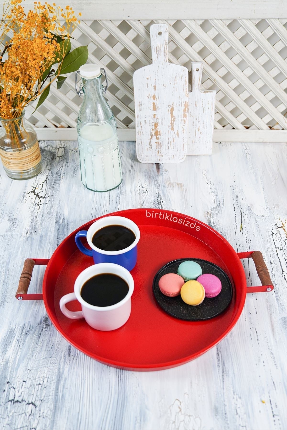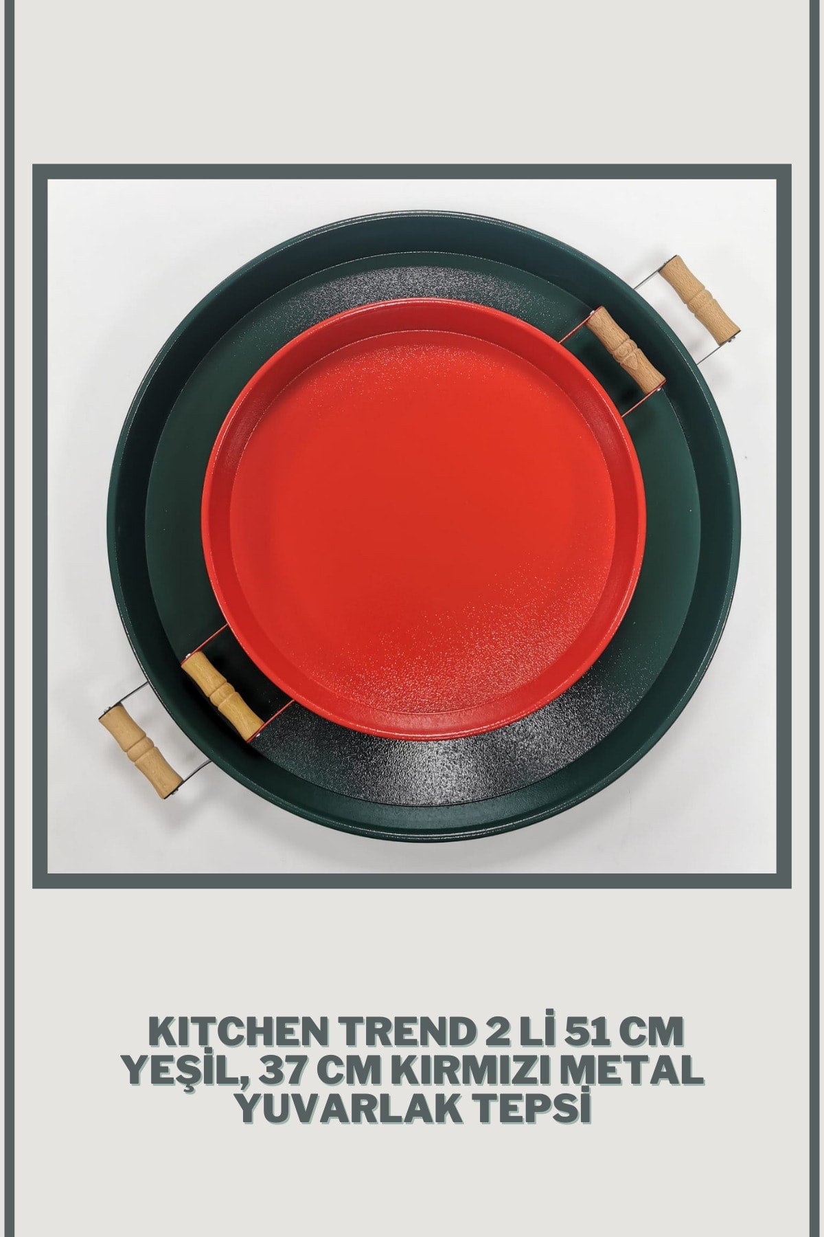 صينية تقديم دائرية معدنية مكونة من قطعتين، مقاس 51 سم، باللون الأخضر و37 سم، باللون الأحمر، صينية تقديم الشاي والقهوة