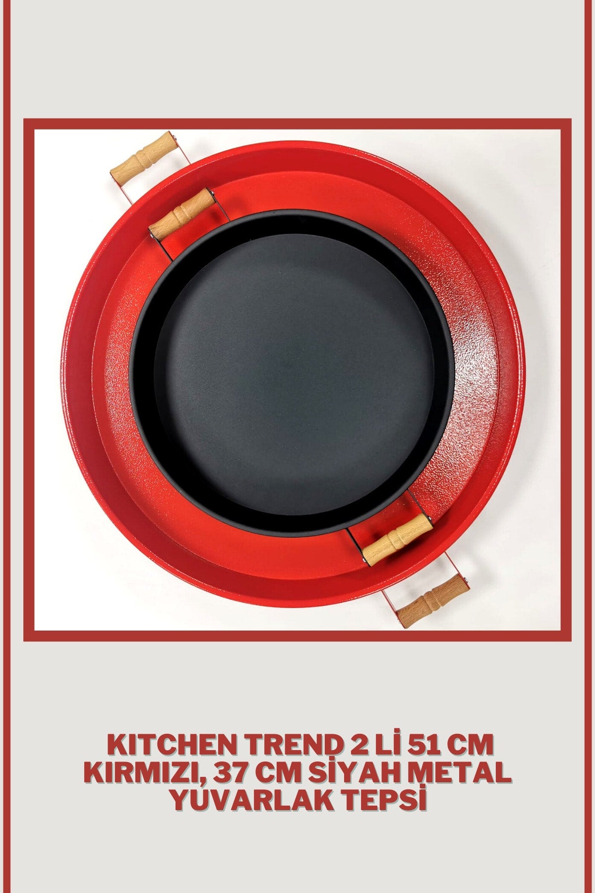 صينية تقديم دائرية معدنية مكونة من قطعتين باللون الأحمر مقاس 51 سم، صينية تقديم الشاي والقهوة باللون الأسود مقاس 37 سم