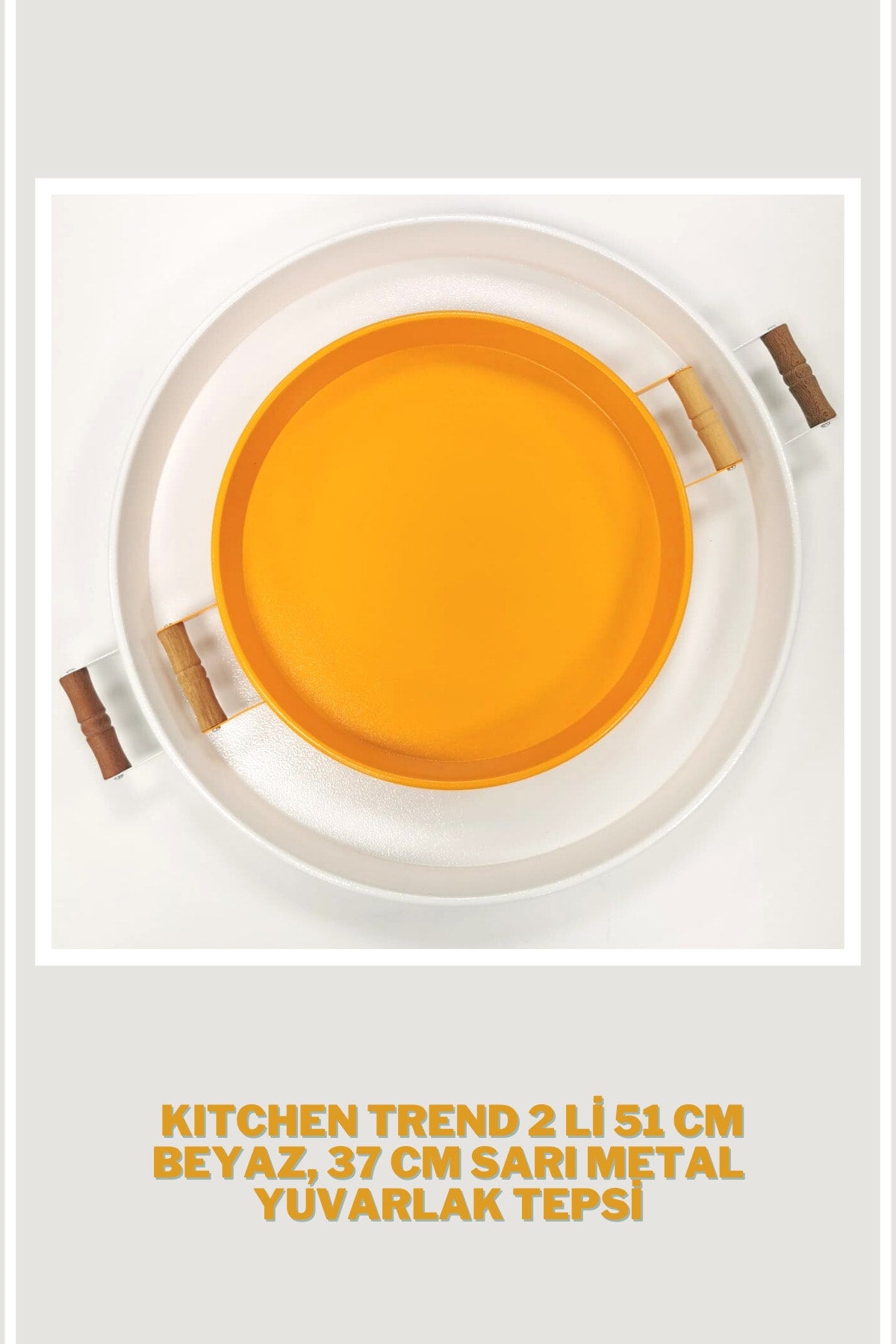 صينية تقديم دائرية معدنية سعة 2 لتر، مقاس 51 سم، لون أبيض، 37 سم، لون أصفر، صينية تقديم شاي وقهوة