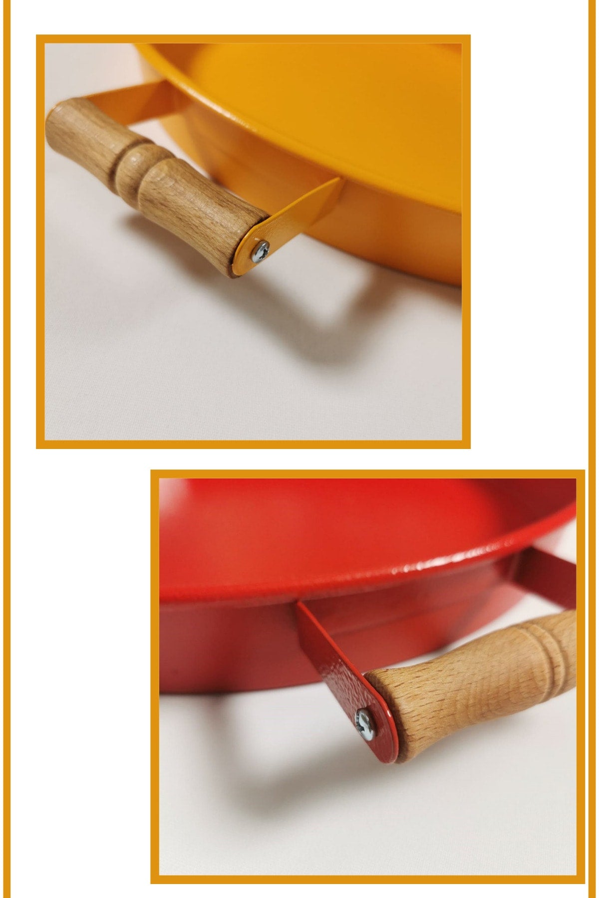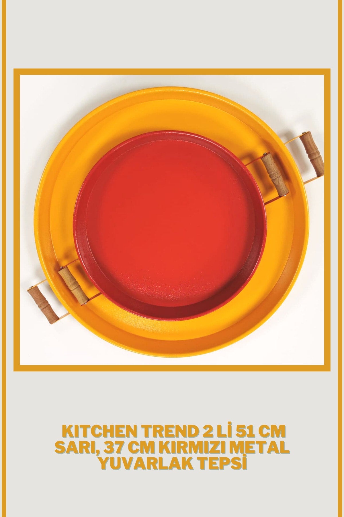صينية تقديم دائرية معدنية سعة 2 لتر، مقاس 51 سم، لون أصفر 37 سم، لون أحمر، صينية تقديم شاي وقهوة
