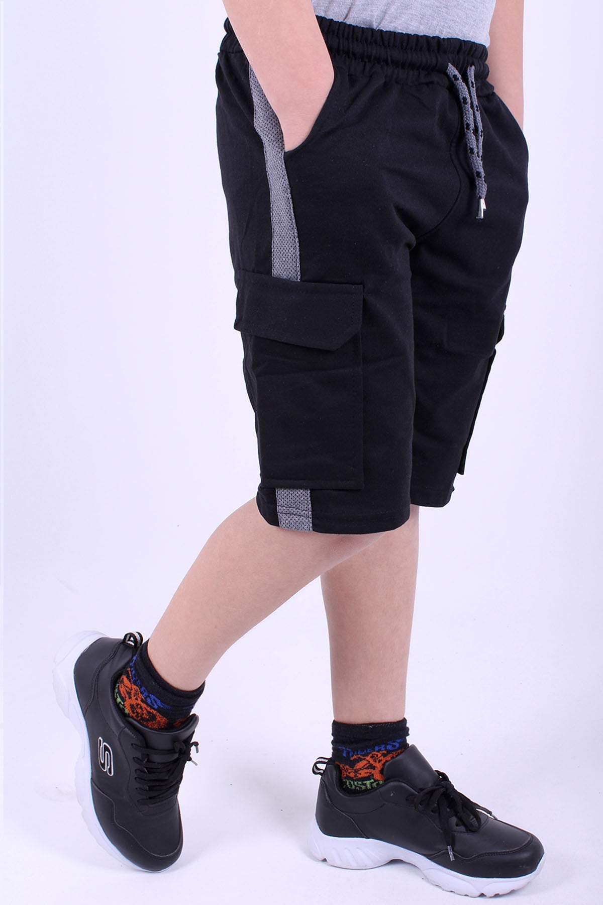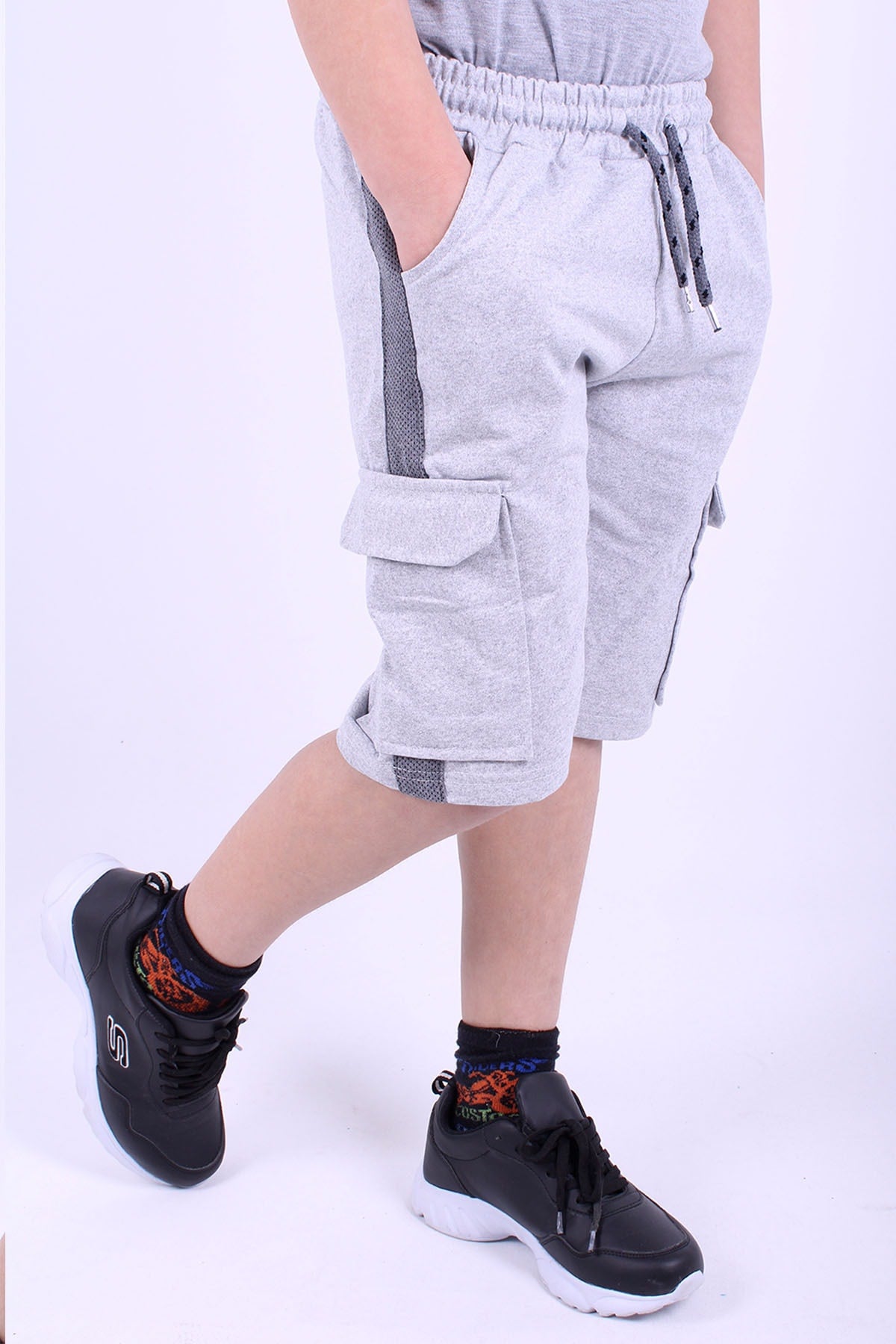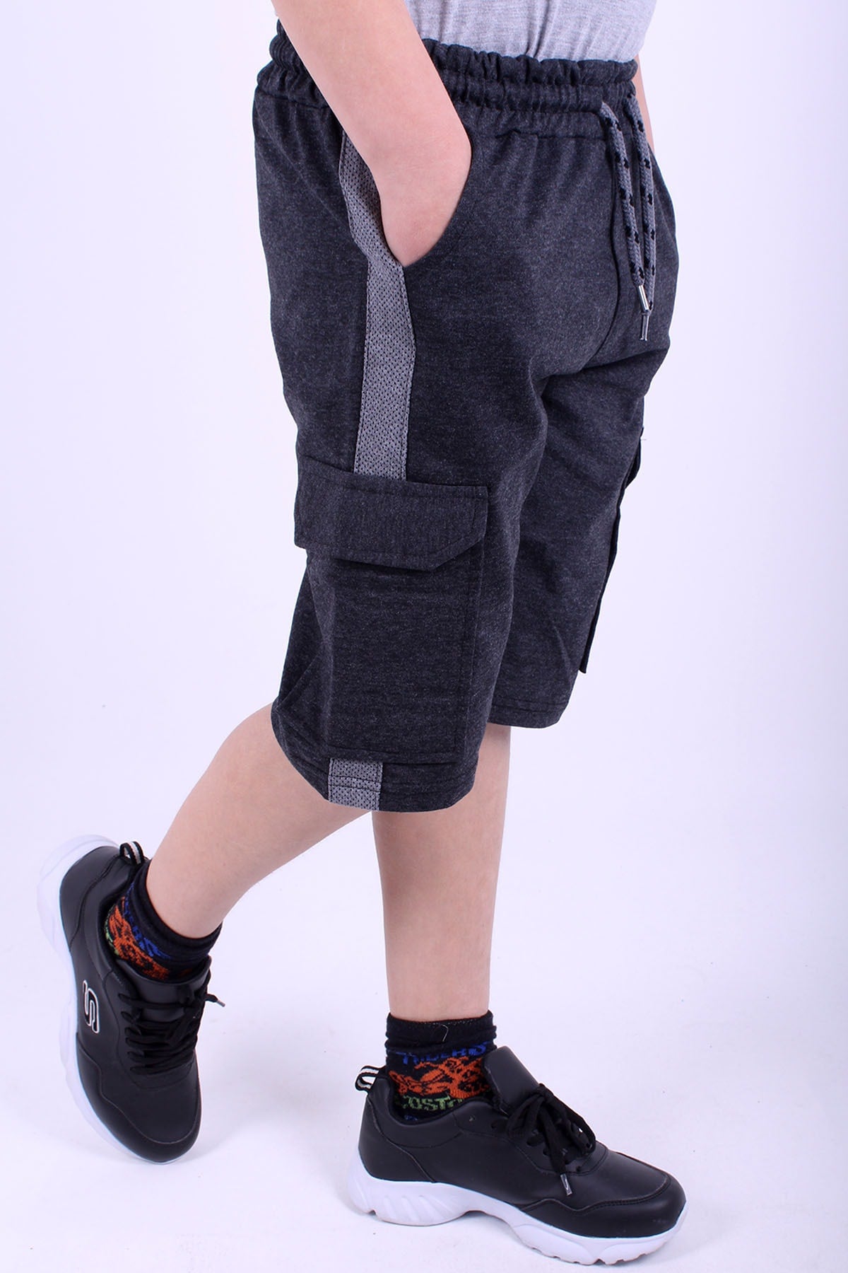 بنطال كابري مخطط جانبي للأولاد مع جيب كارغو