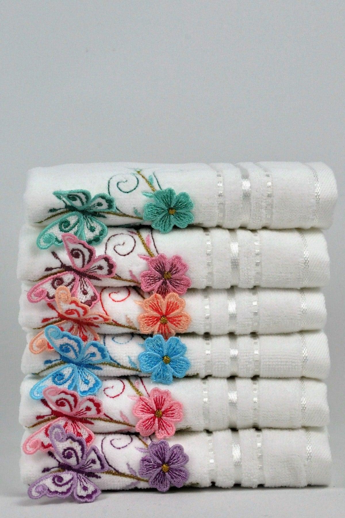 6 قطع فراشة متعددة الألوان ثلاثية الأبعاد مخملية مهر هدية 28x50 430 جرام منشفة مطبخ قطنية
