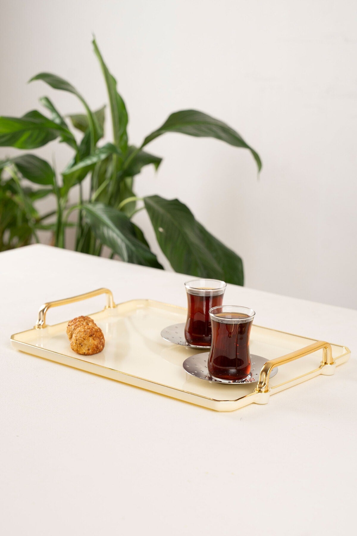 صينية كريمة للتقديم، أدوات مائدة منزلية مزخرفة، مطبخ، شاي، قهوة