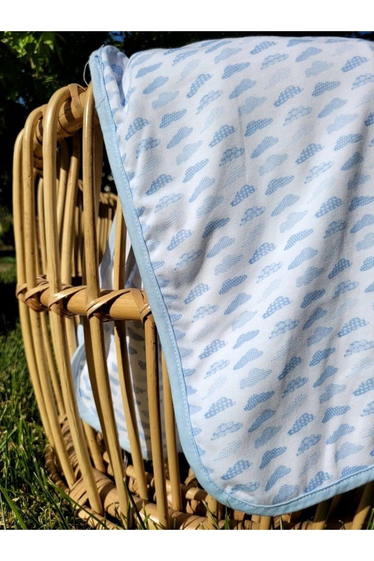 بطانية قطنية مزدوجة الطبقات من القطن الممشط للأطفال مقاس 75 × 90 سم أزرق غامق