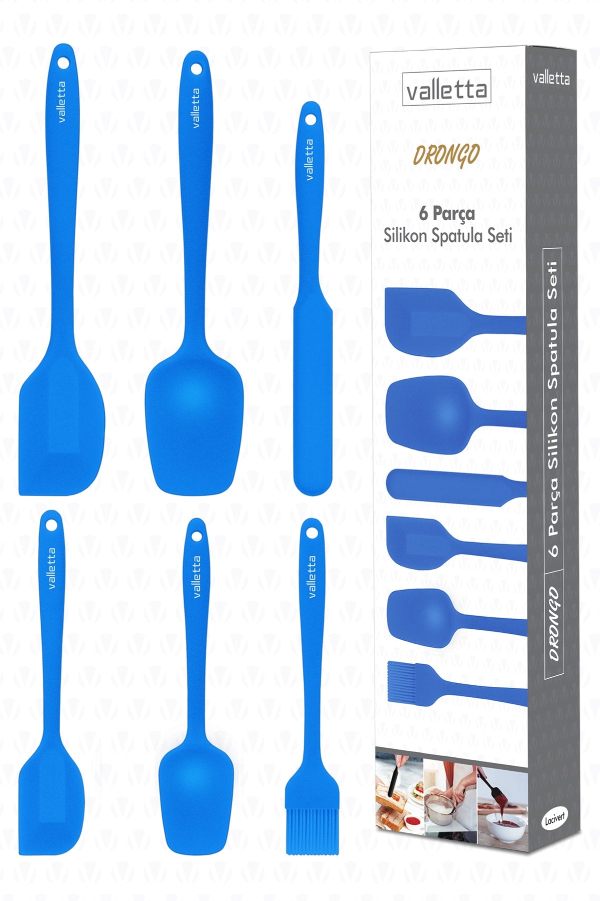 طقم ملاعق سيليكون مقاومة للحرارة والنار وغير لاصقة من درونجو، 6 قطع، أزرق داكن