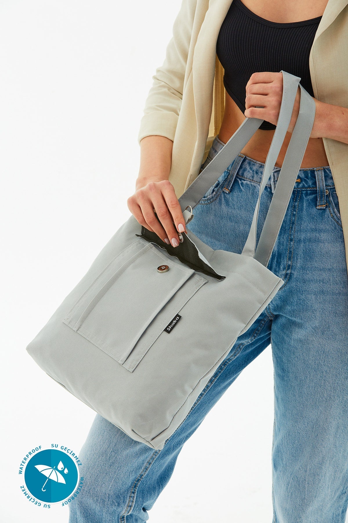 حقيبة يد وكتف رياضية يومية نسائية من قماش U7 رمادي اللون، كبيرة الحجم، مكونة من حجرتين ومقاوم للماء، مقاس B:35 E:35
