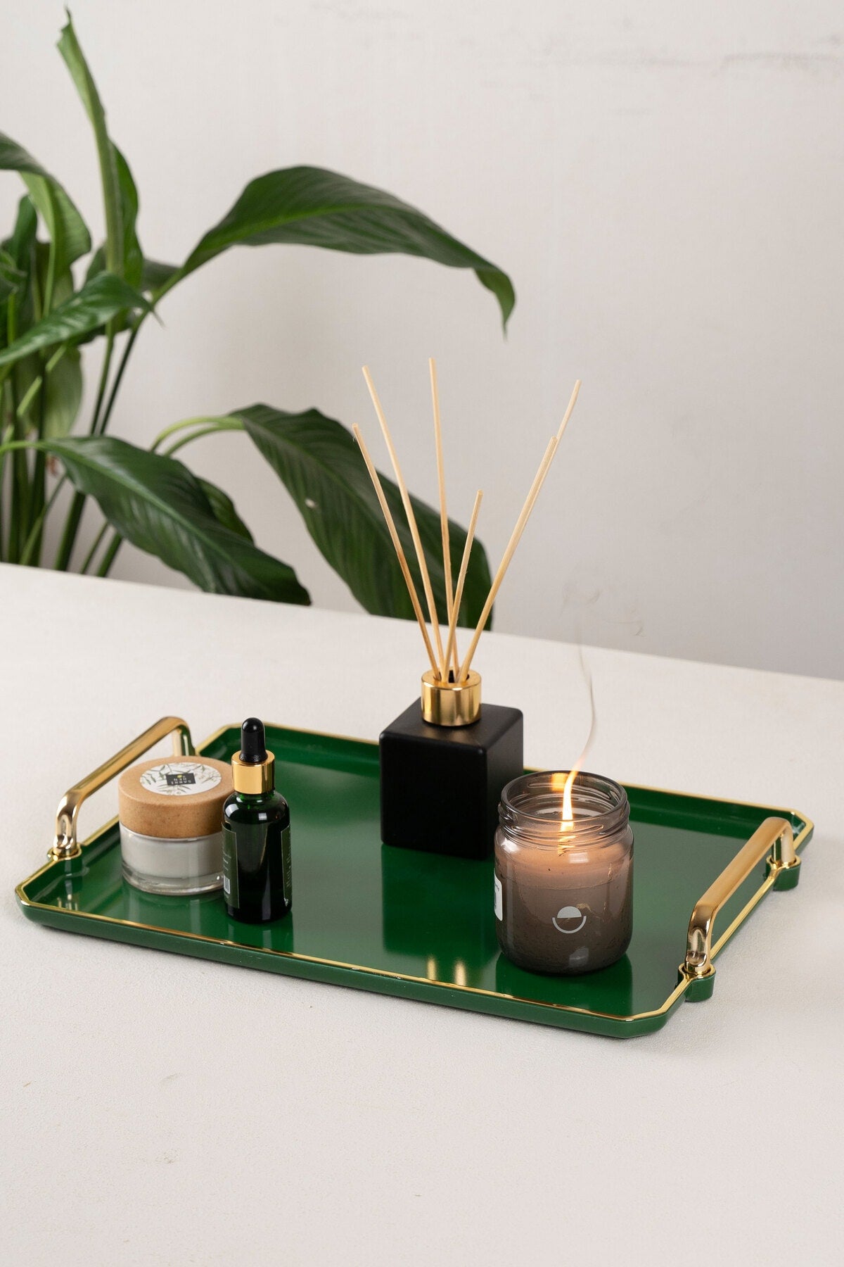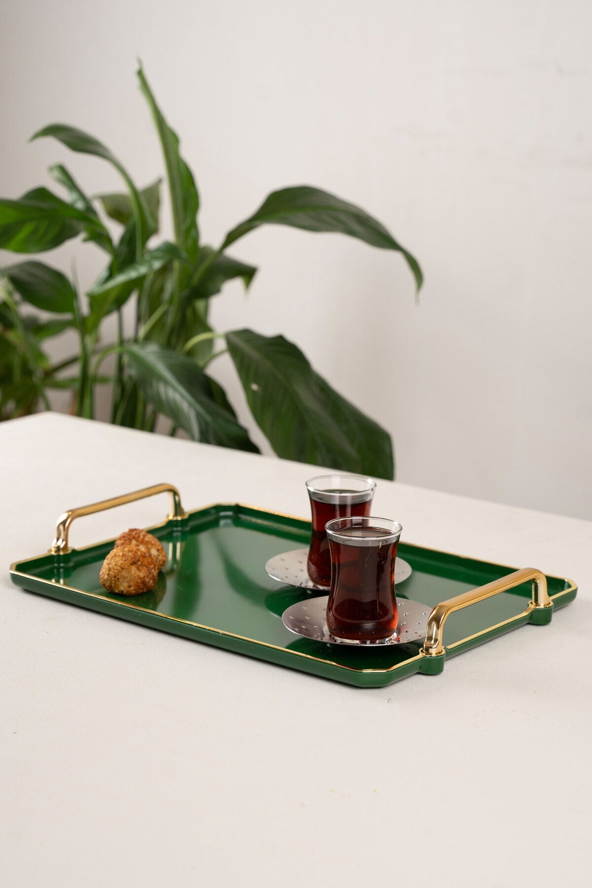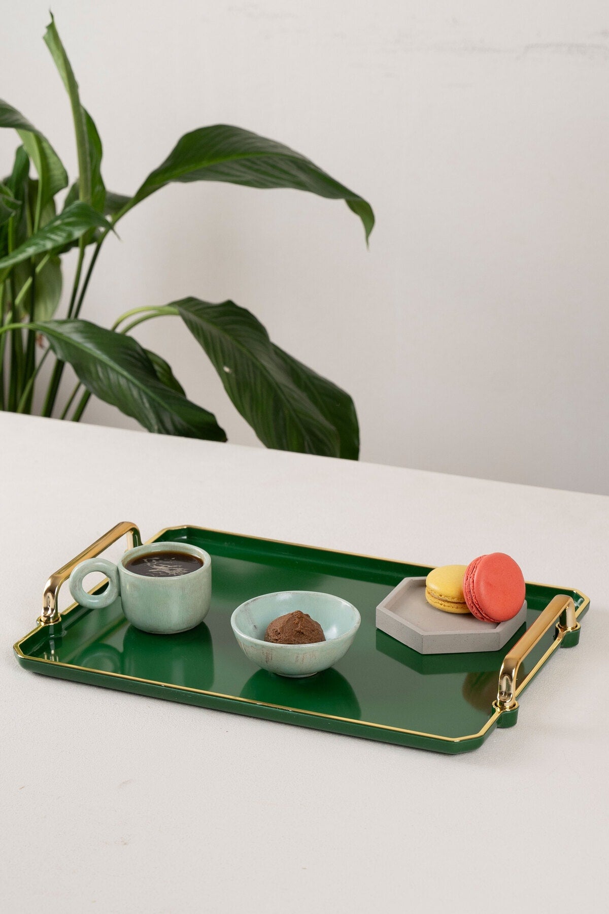 صينية خضراء للتقديم، أدوات مائدة منزلية مزخرفة، مطبخ، شاي، قهوة