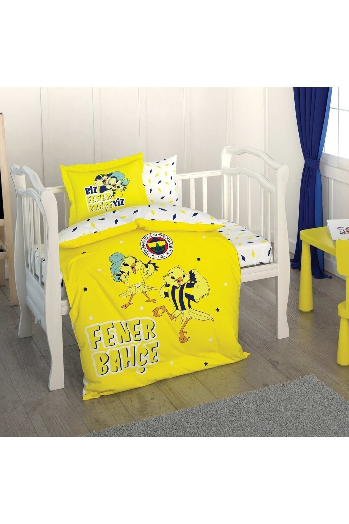 طقم غطاء لحاف للأطفال من فنربخشة مرخص باللون الأصفر والأزرق الداكن من Fb 100% قطن