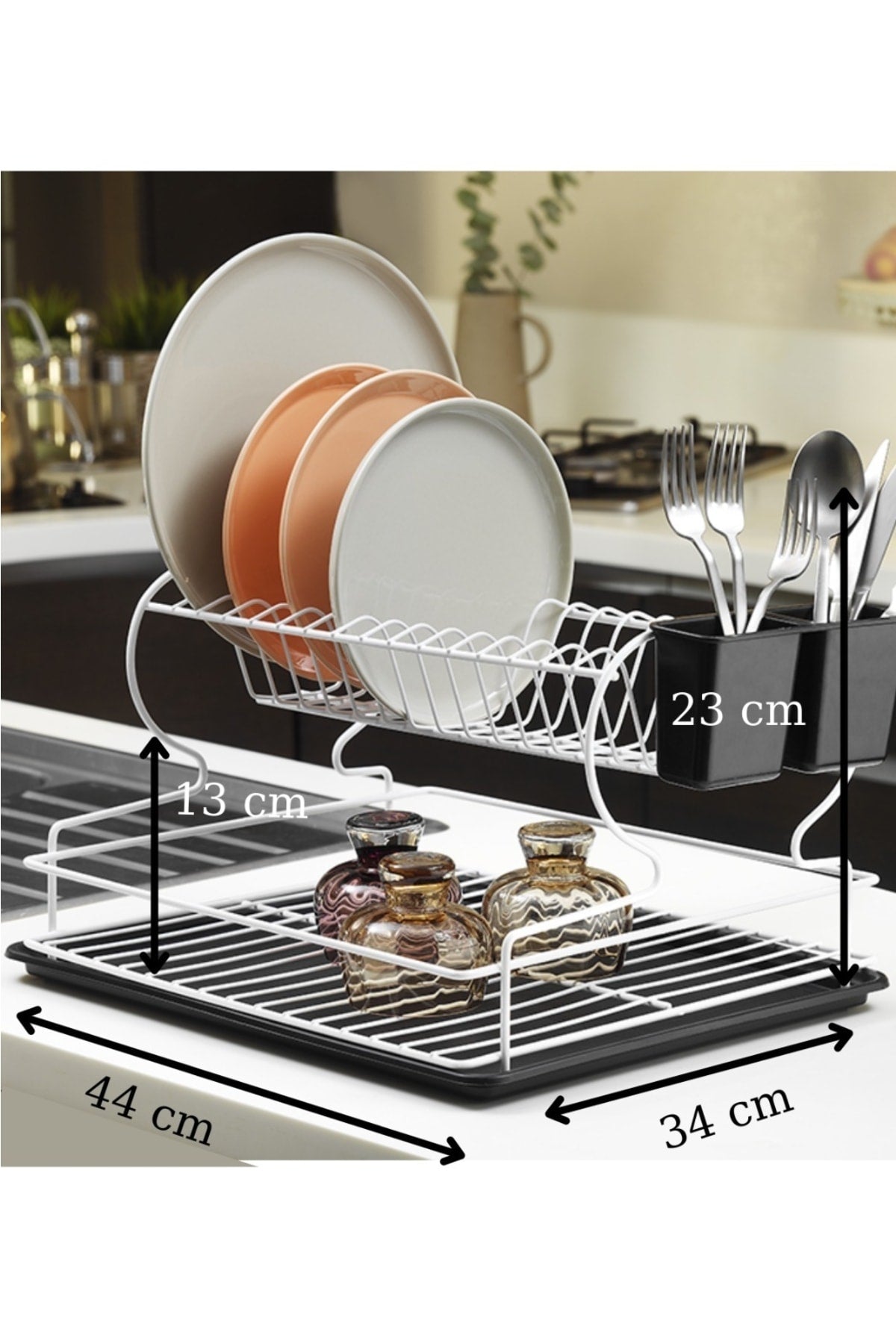 رف أطباق من الفولاذ المقاوم للصدأ من Lifetime، سلة أطباق، رف أطباق من طبقتين، طلاء بلاستيك حراري أبيض