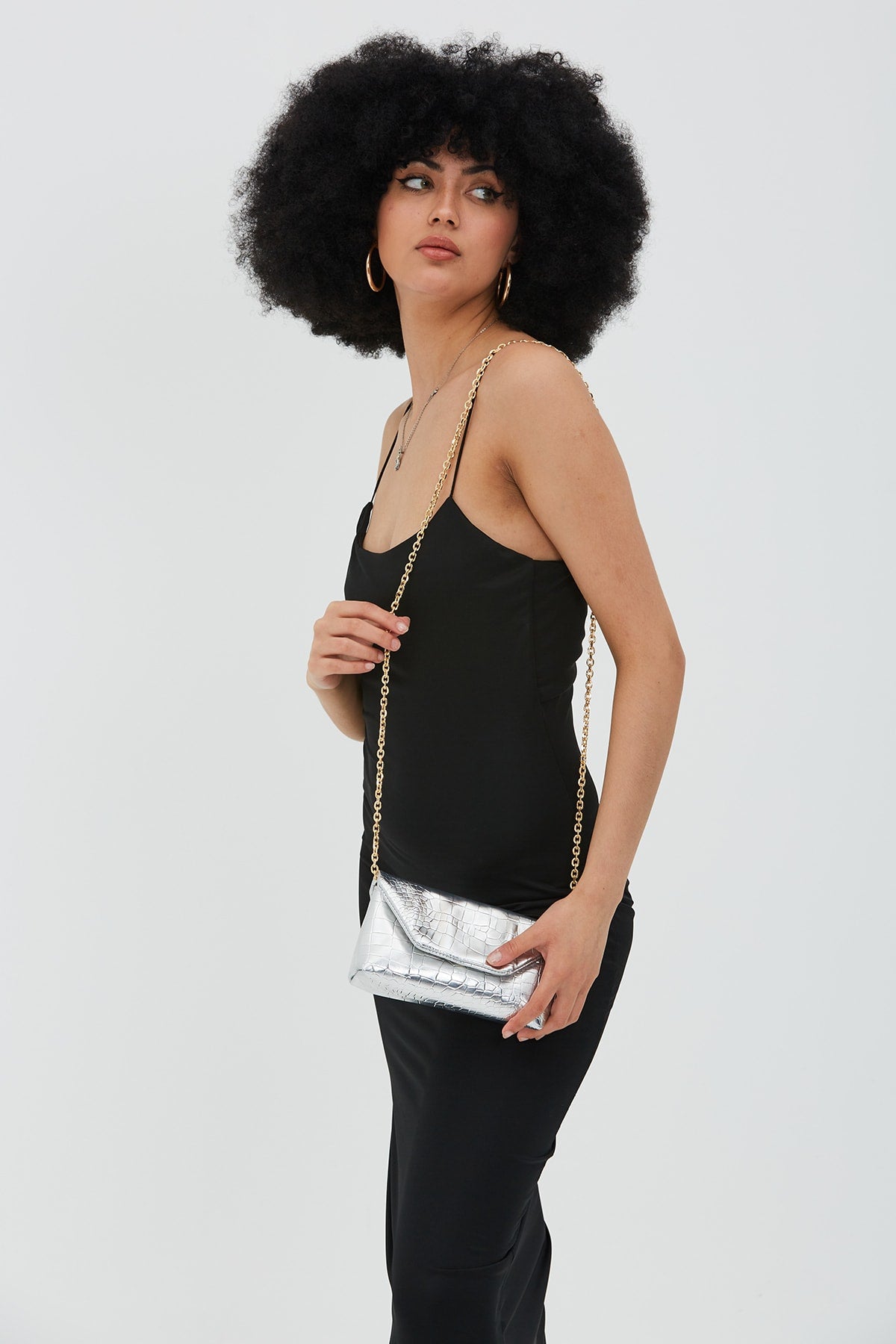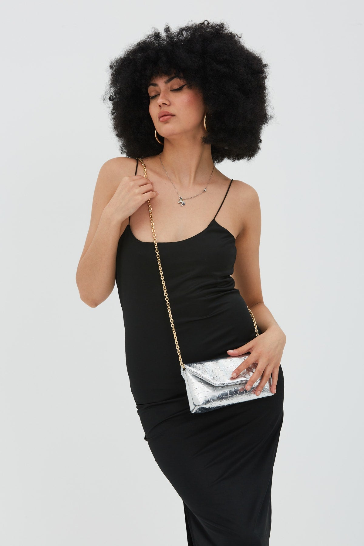 حقيبة كروس بودي نسائية من جيك، بحزام كروشيه طويل، باللون الفضي