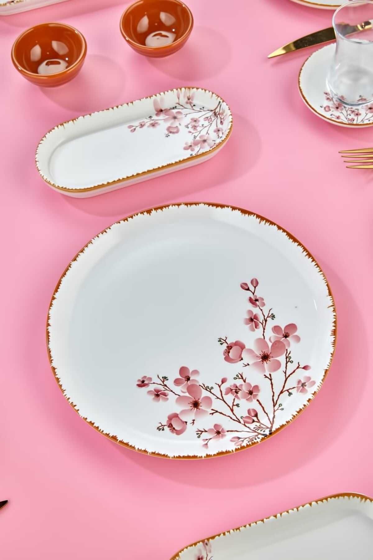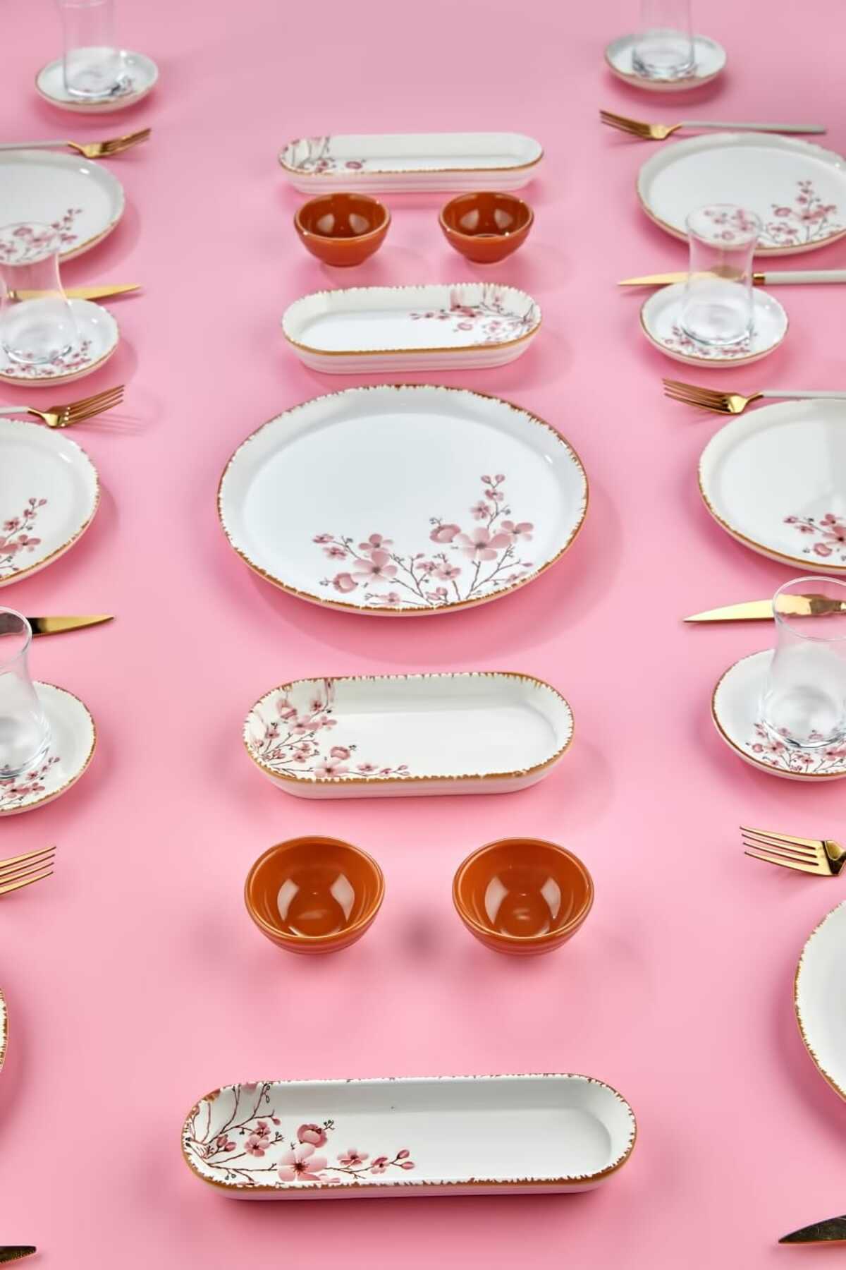 طقم إفطار فاخر من السيراميك مصنوع يدويًا، مناسب لـ 6 أشخاص، مكون من 21 قطعة، من زهر الساكورا
