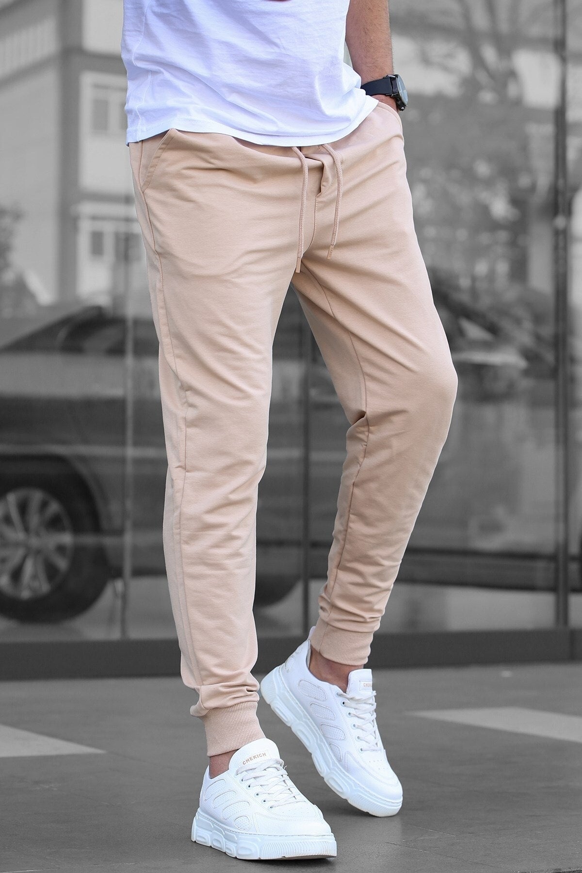 بدلة رياضية مرنة للرجال باللون البيج 4821
