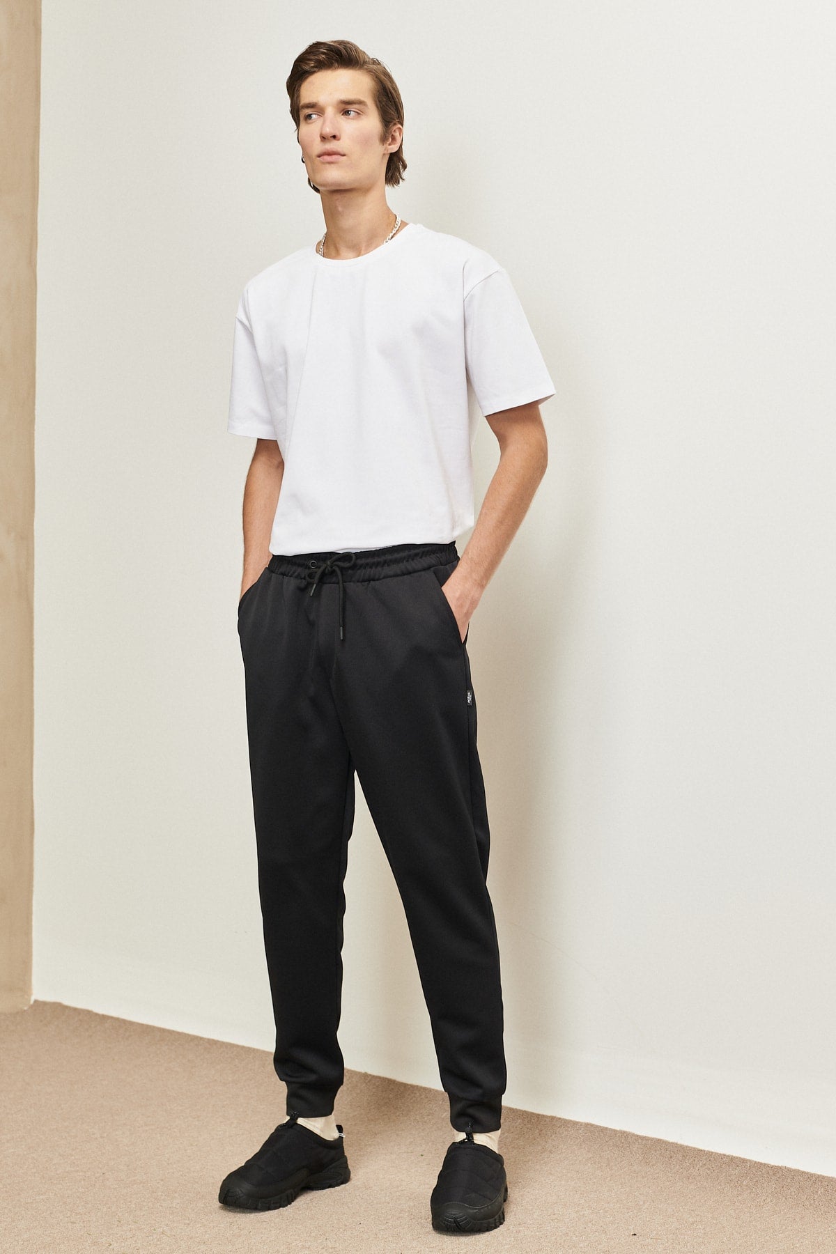بنطال رياضي رجالي أسود بقصّة عادية ومقاس قياسي وخصر مطاطي وساقين مريح