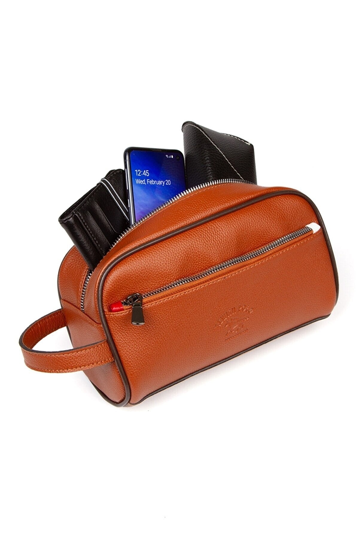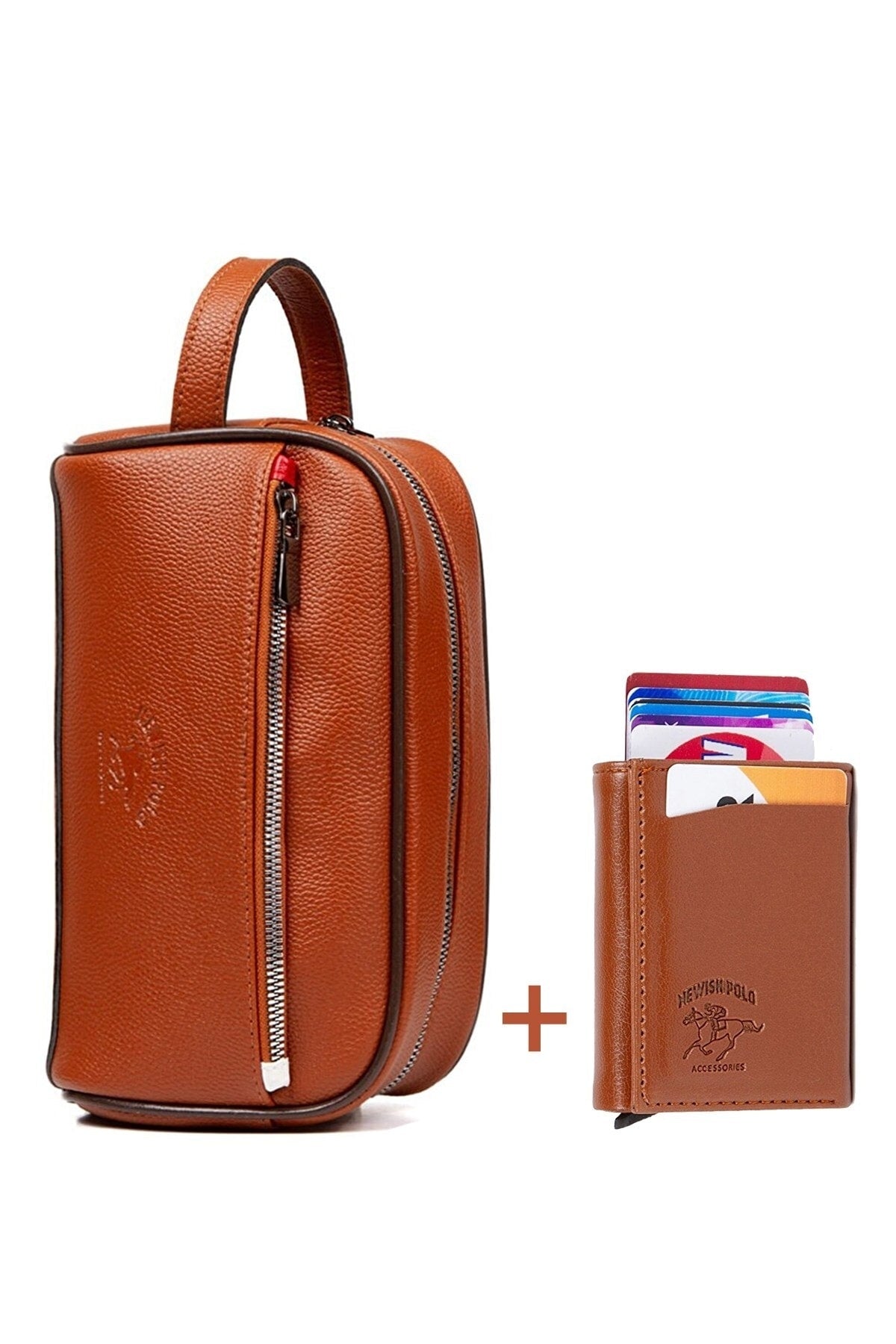 مجموعة محفظة آلية من الجلد للرجال، حقيبة سفر وحقيبة حلاقة ومستحضرات تجميل