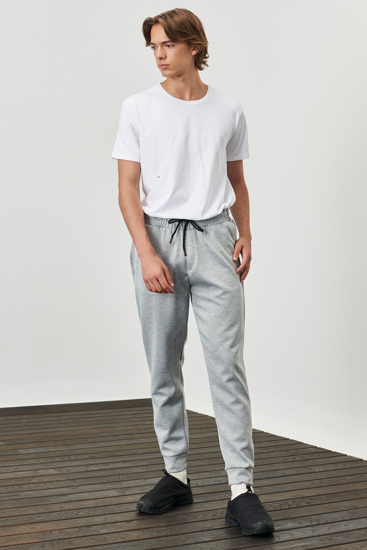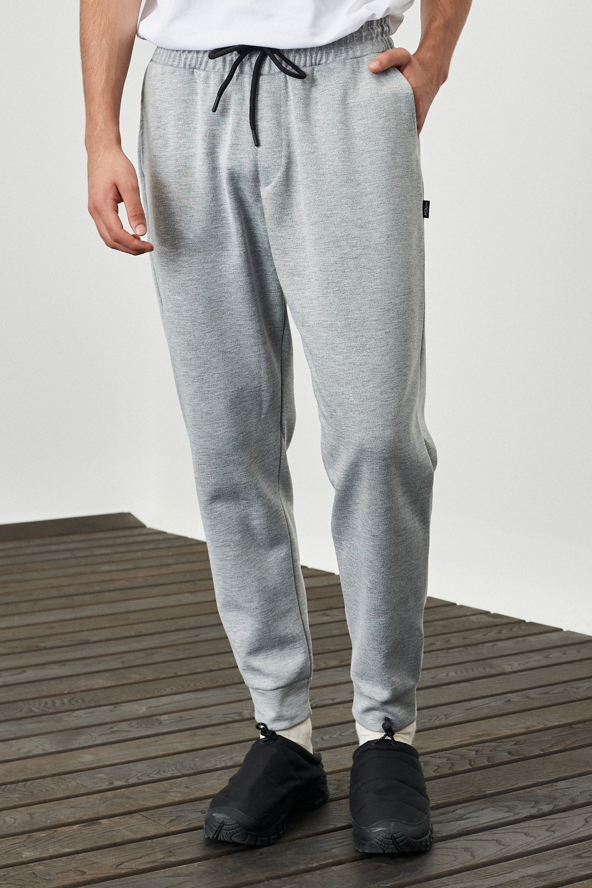 بنطال رياضي رجالي رياضي مريح بقصّة عادية وخصر مطاطي وساقين، رمادي فاتح، مزيج من الألوان