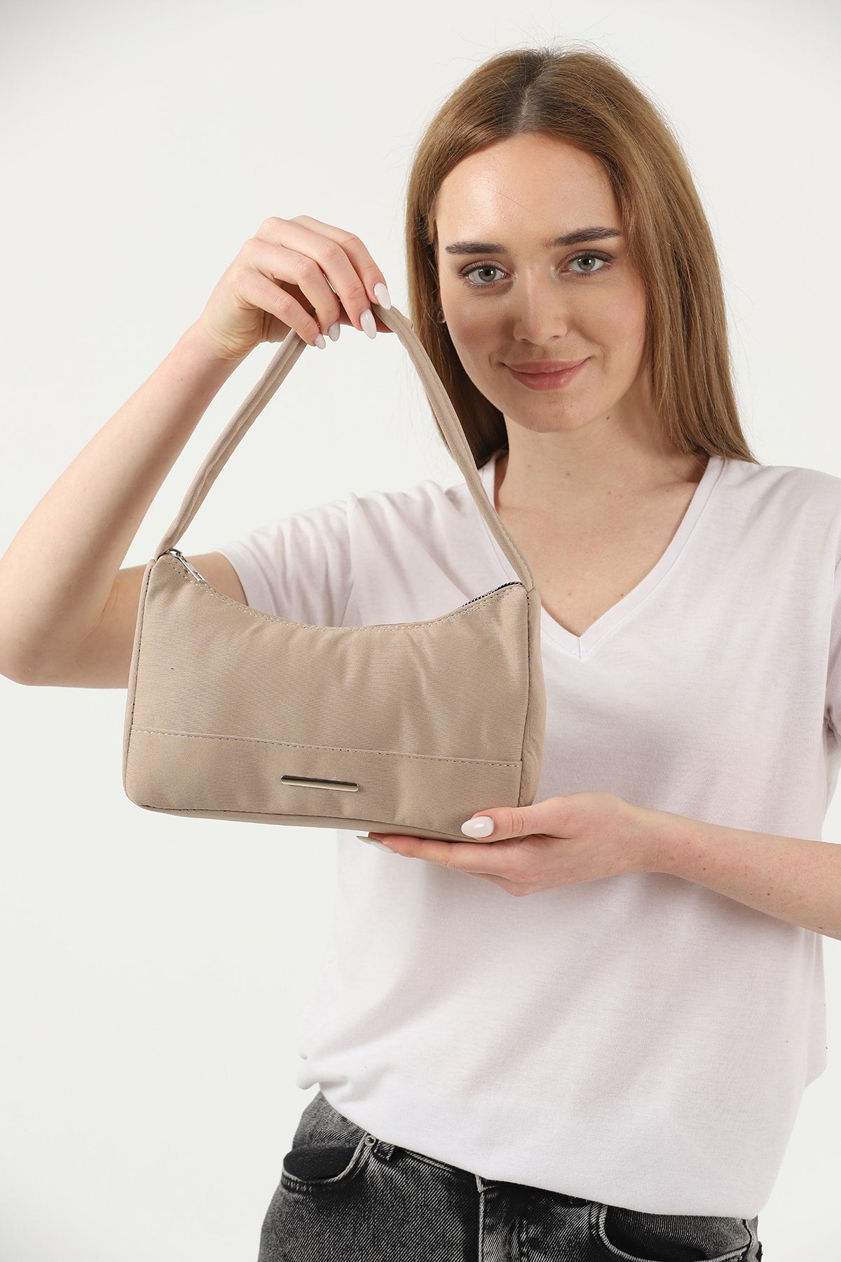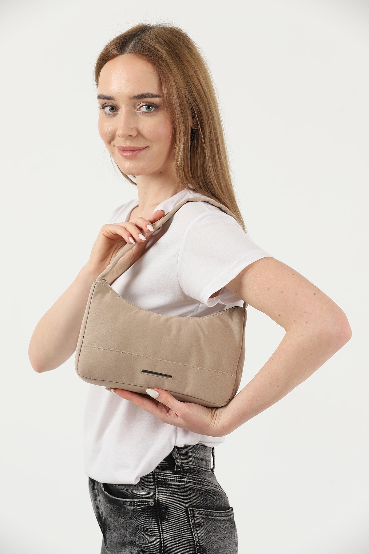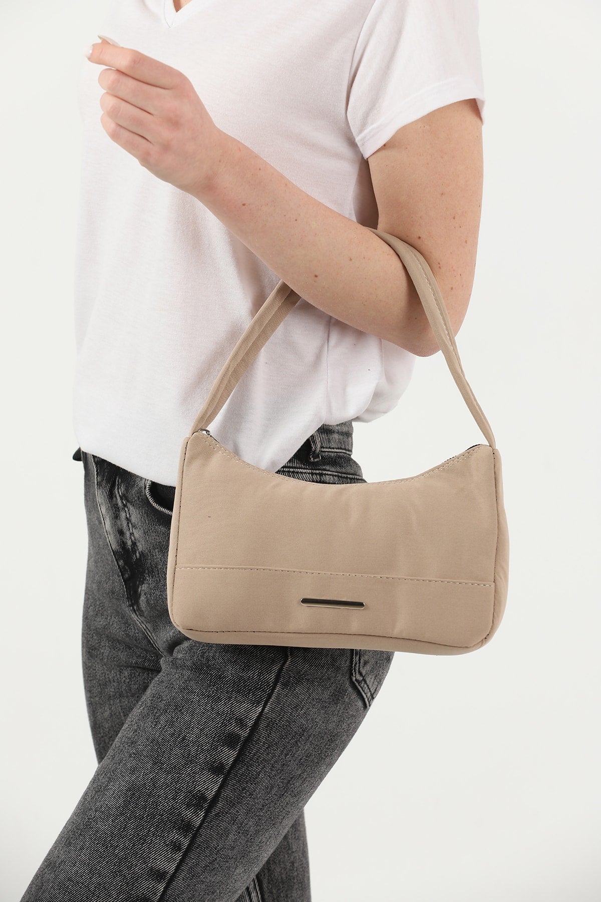 حقيبة يد وكتف يومية نسائية من قماش قماشي بسحاب واحد U26 من Mink مقاس U:13 E:25 G:6