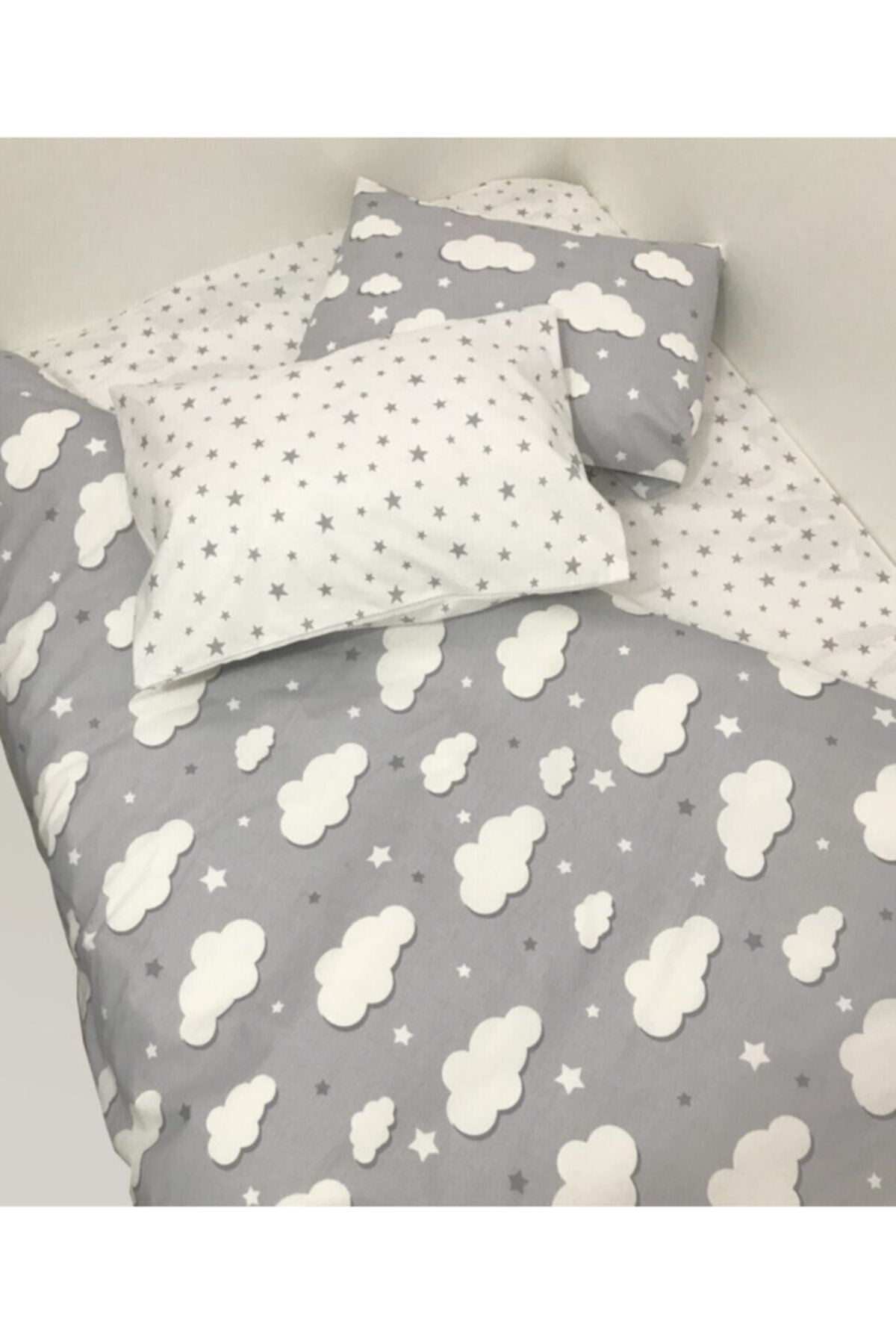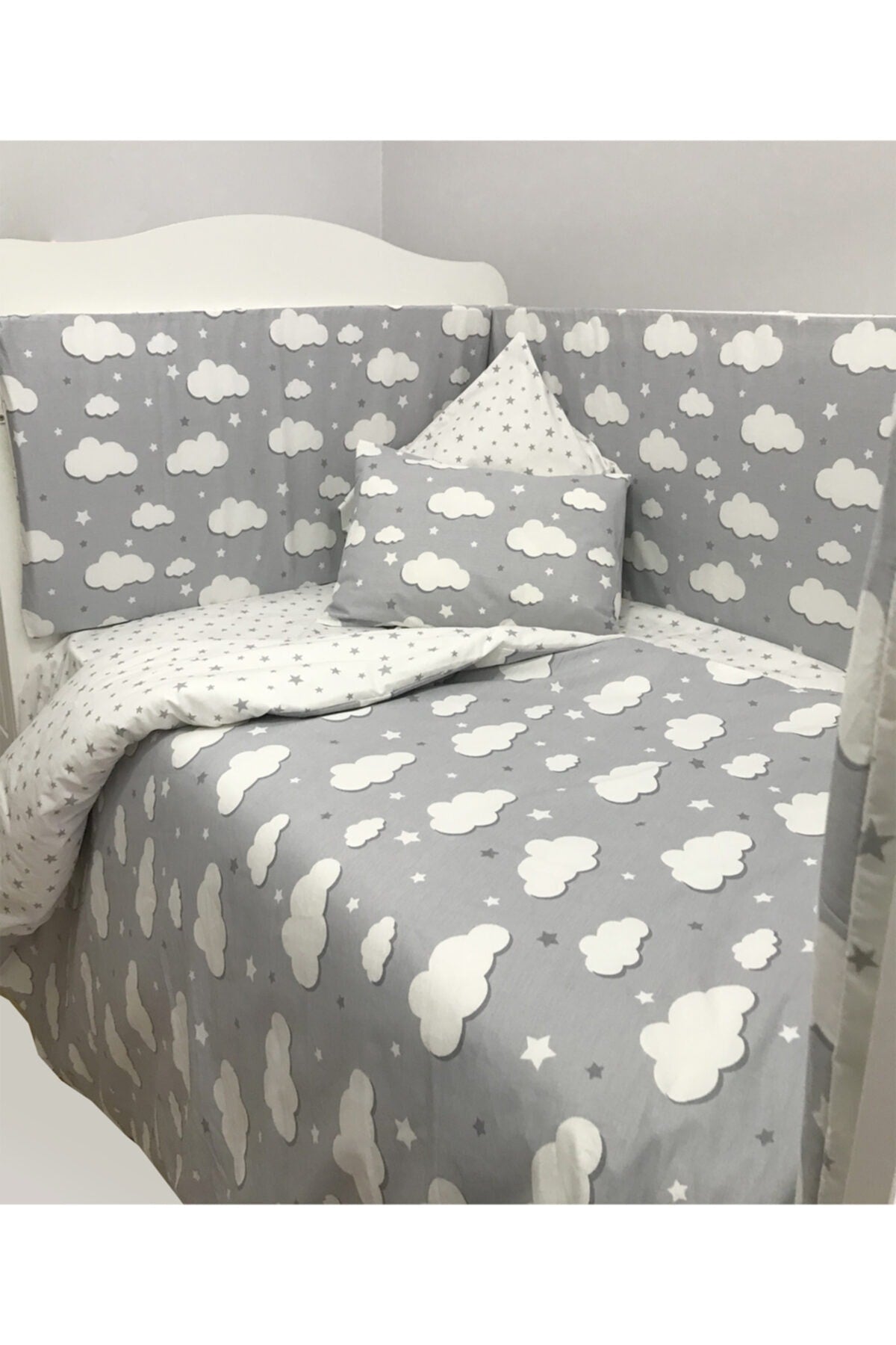 طقم حماية جانبية لسرير الأطفال وغطاء لحاف بتصميم سحابة رمادية من مونتيسوري، مقاس 120×200 سم