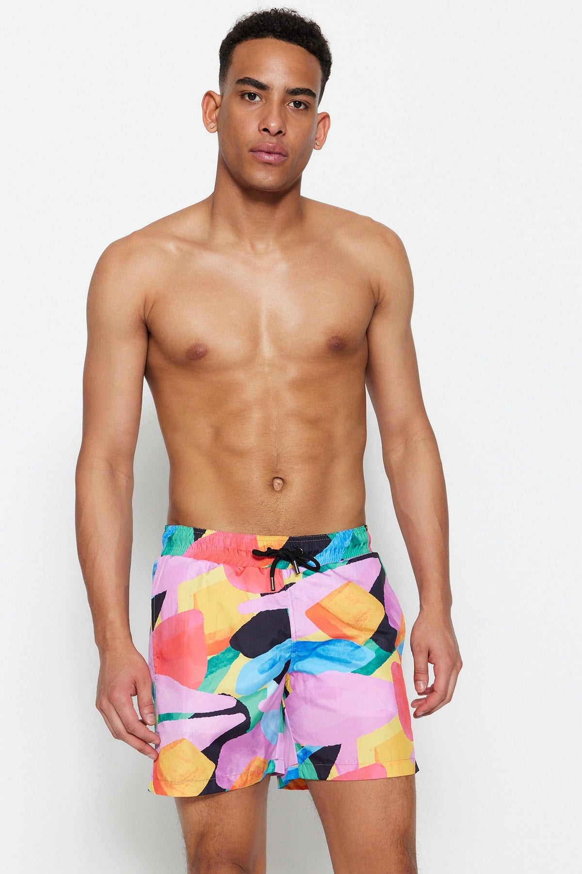 شورت سباحة رجالي متعدد الألوان بنمط تجريدي قياسي Tmnss23Ds00001