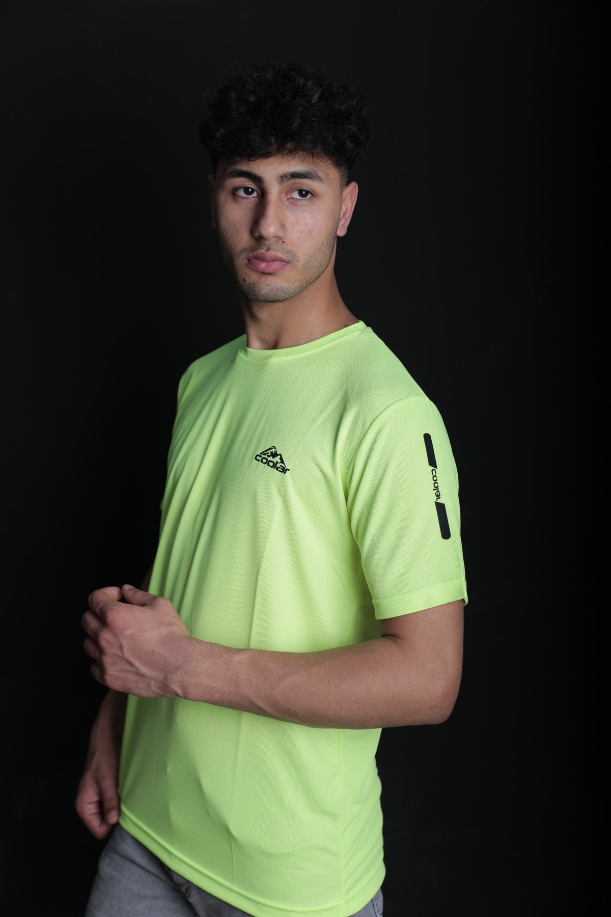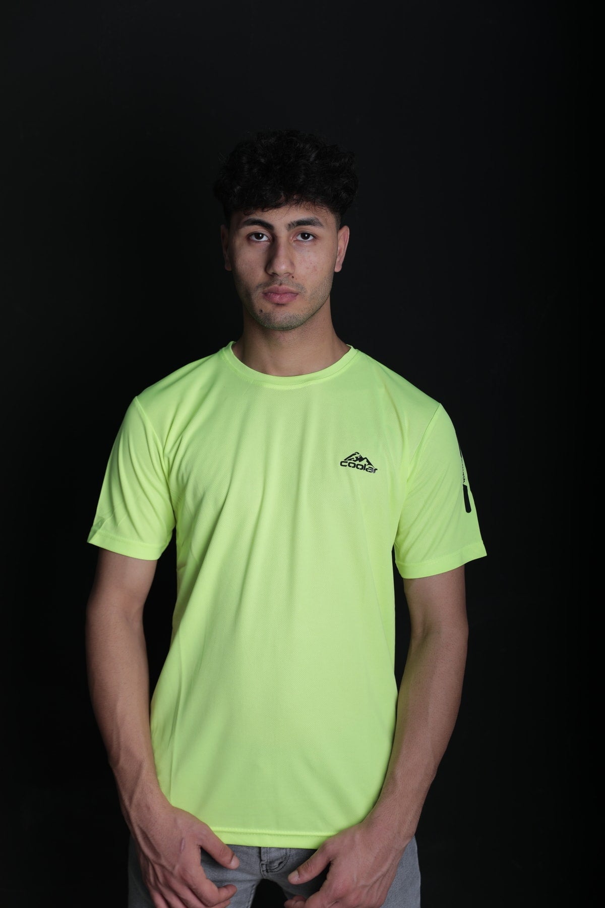 تي شيرت رياضي خارجي عالي الأداء، بلون أصفر نيون ساطع، يمتص العرق