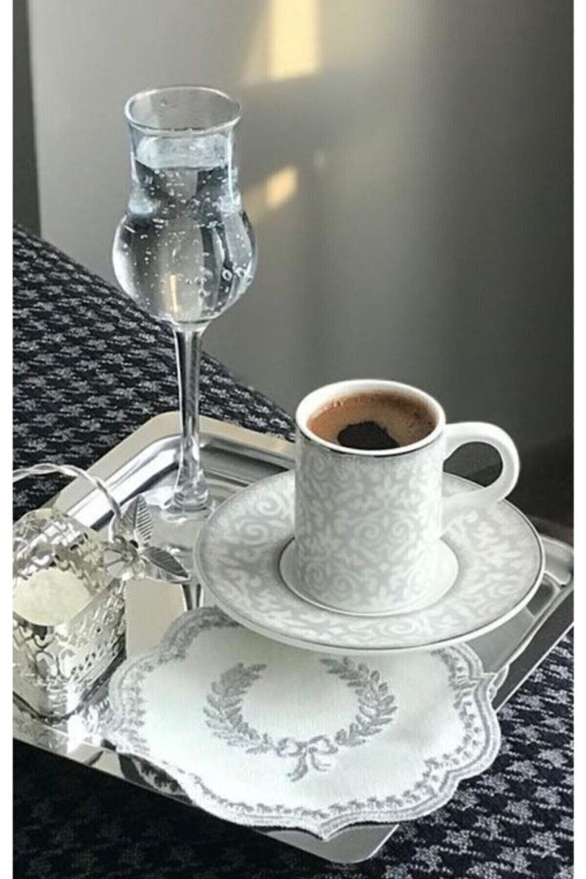 طقم تقديم قهوة وطبق من نوم تريند، 6 قطع، مربعة الشكل من الفولاذ المقاوم للصدأ، لون فضي، 21×21 سم