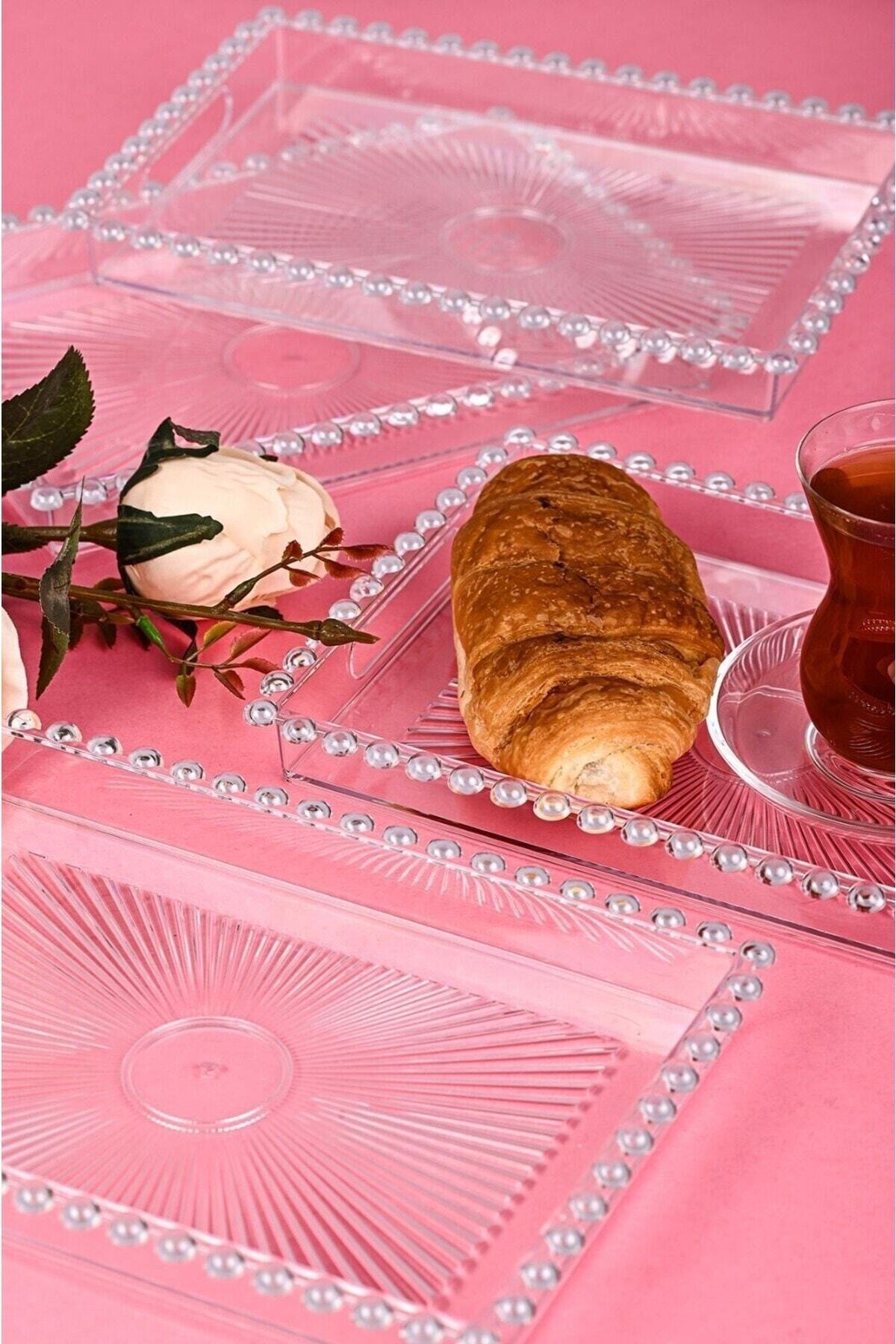 قطع كريستال مربعة شفافة للتقديم والتقديم وصينية الشاي والقهوة والطبق