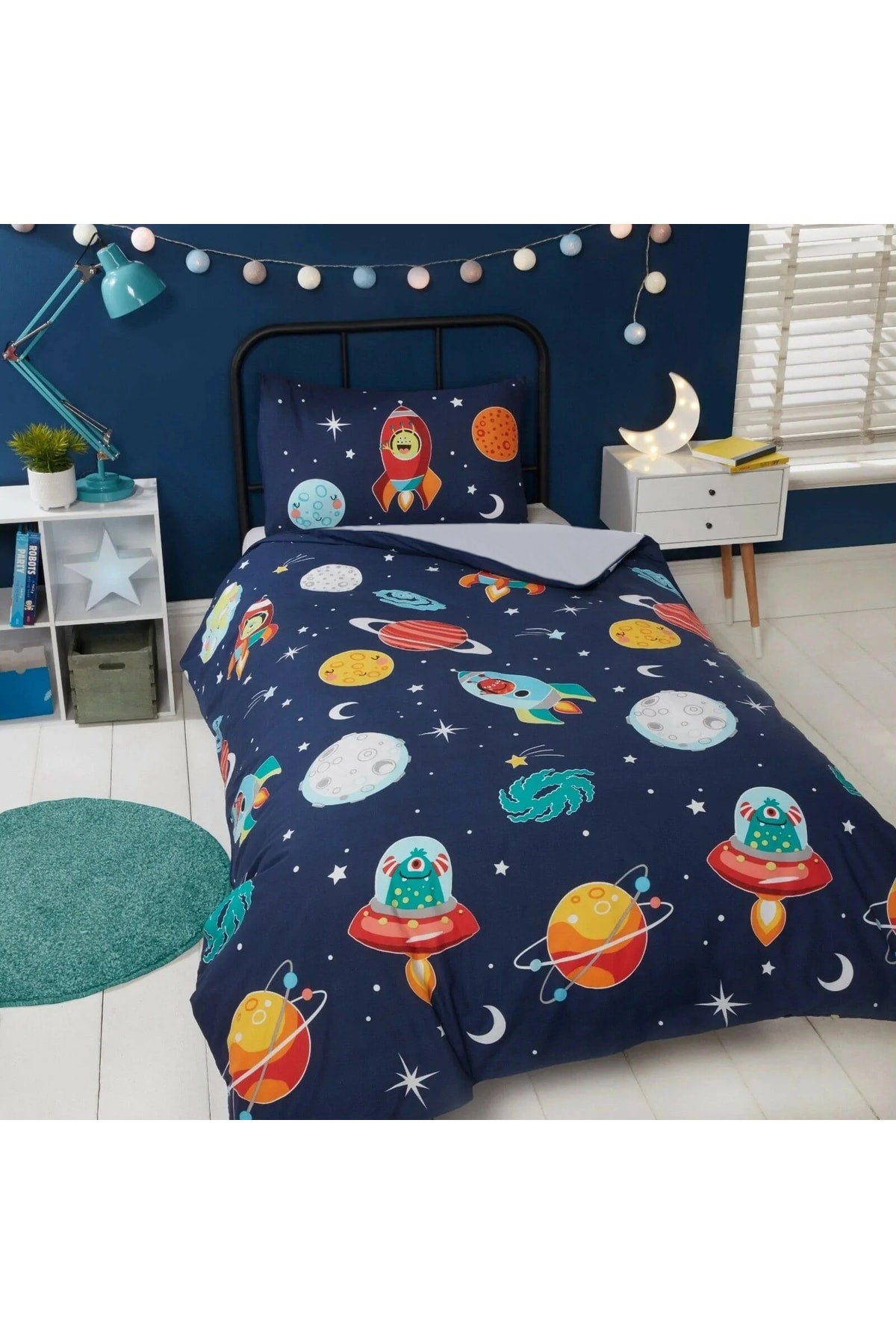 طقم غطاء لحاف لغرفة الأطفال بتصميم الفضاء من القطن الساتان بنمط المجرة