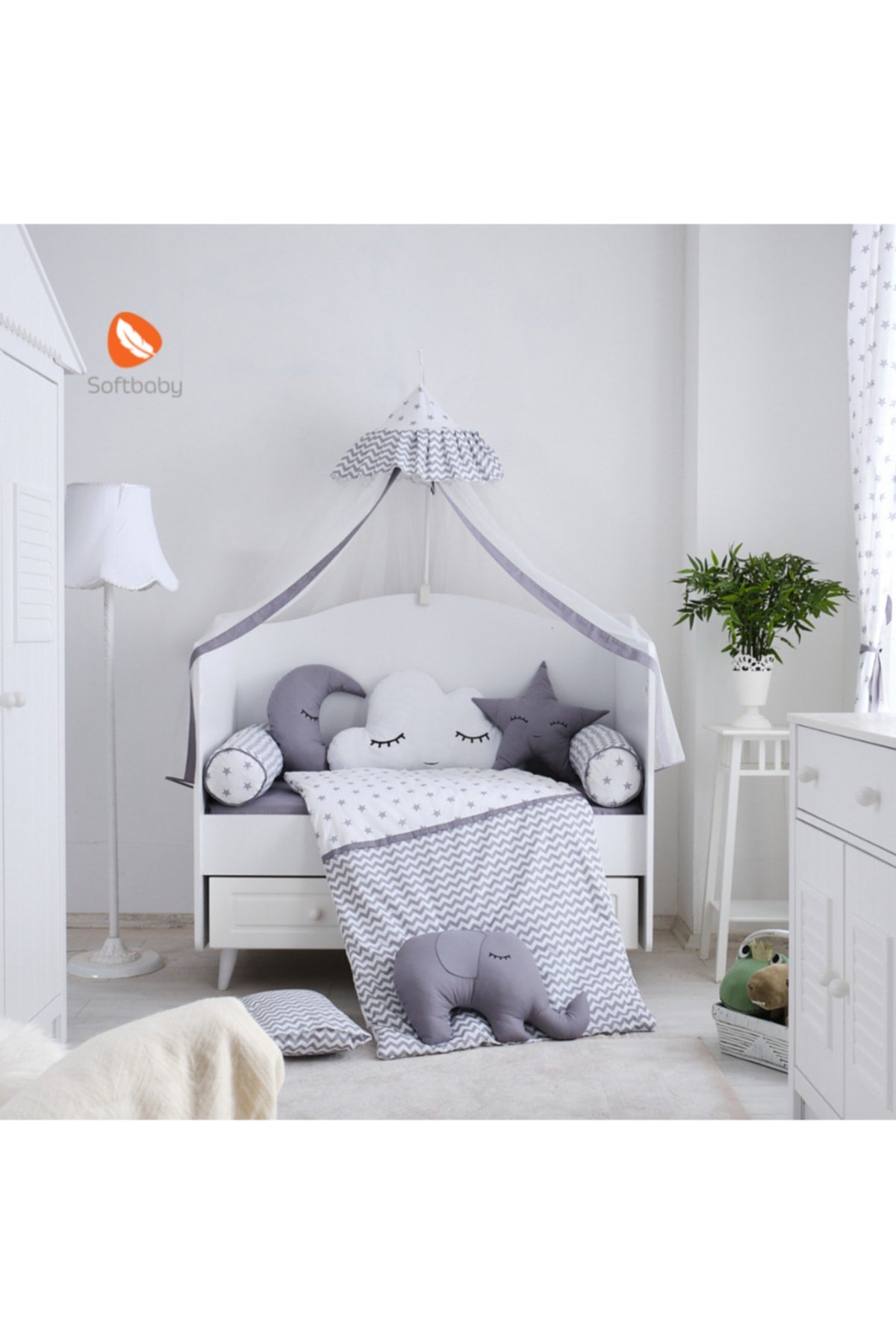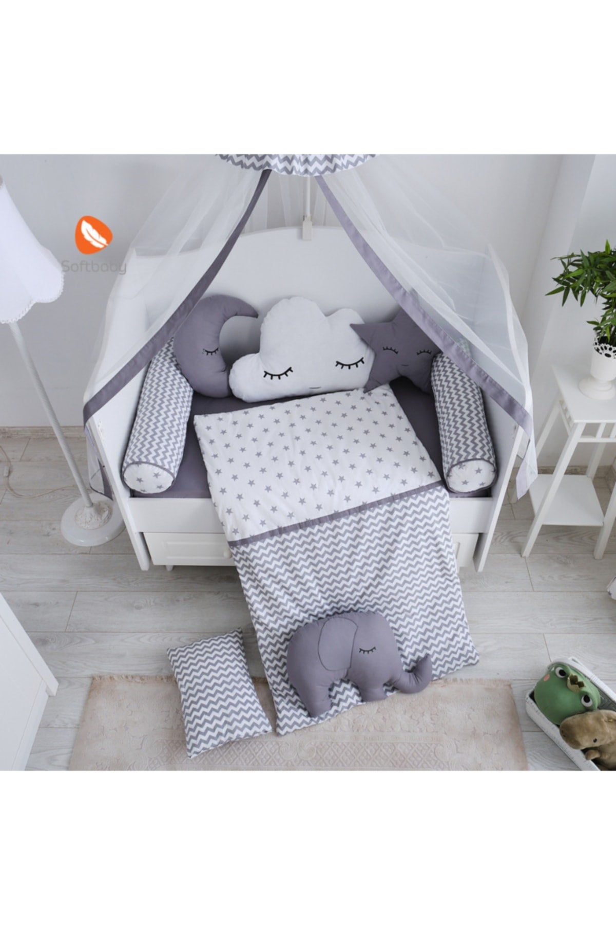 طقم سرير ستيلا جراي للنوم، رمز المنتج: sfb-1011.01.01، العلامة التجارية: سوفت بيبي، مصنوع من قماش قطني 100%. صُنع بعناية فائقة، آخذين في الاعتبار صحة طفلك وراحته. سيضفي جوًا جديدًا على غرفتك بألوان ستيلا جراي وأنماطها المتعرجة. حشوة ألياف عالية الجودة وسيليكون. متوفر بثلاثة مقاسات: 80×130 - 70×130 و60×120. ملاحظة: تُباع الناموسيات والستائر المعلقة من السقف في صورة المنتج بشكل منفصل. لا يشمل المنتج. محتويات العبوة: لحاف طفل واحد، وسادتان أسطوانيتان، 4 وسائد مزخرفة، وسادة واحدة، غطاء وسادة واحد، ملاءة سرير واحدة. نسخة مُحسّنة لفهم أوضح وتصفح بحث أفضل. مناسب للمستخدمين الذين يبحثون عن معلومات مفصلة وموثوقة عن المنتج.