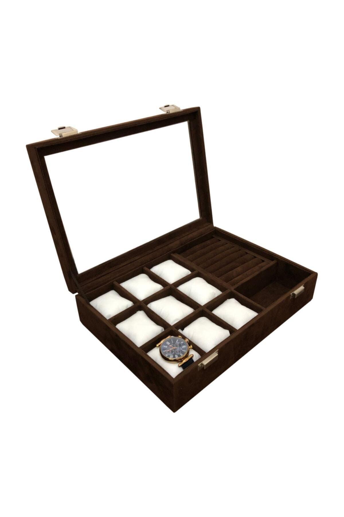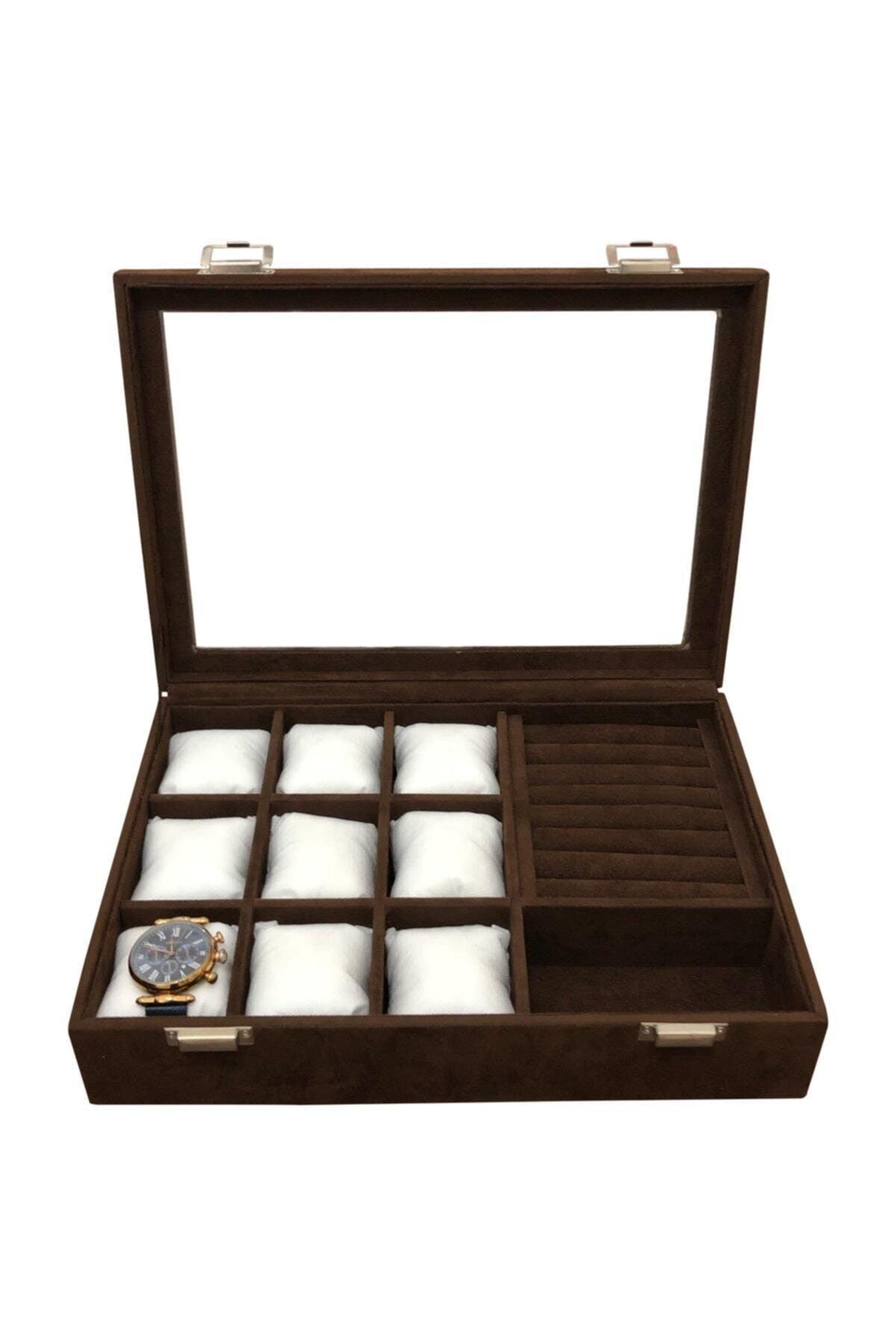 مشاهدة زر الكم الدائري والنظارات صندوق مجوهرات متعدد الأغراض صندوق ساعة بني