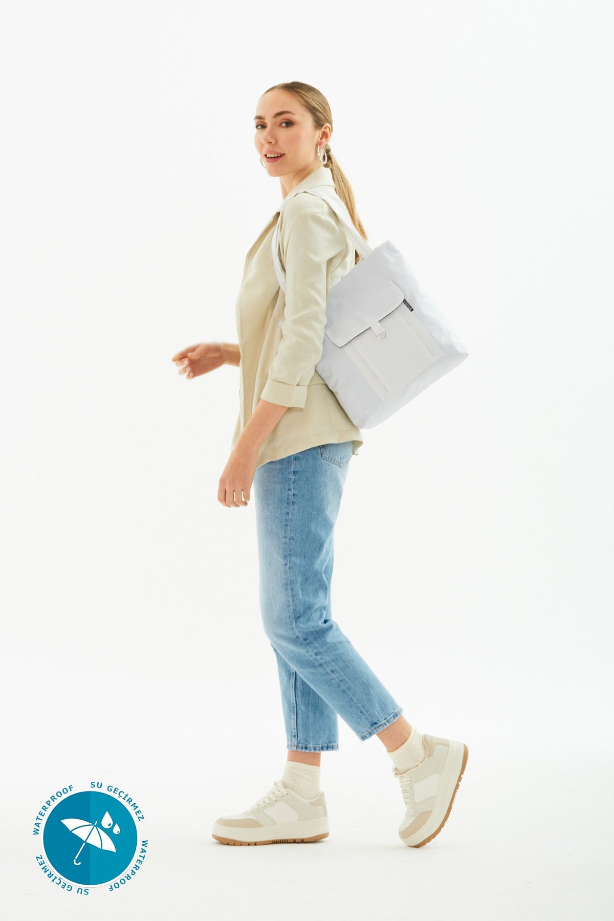 حقيبة كتف وذراع رياضية يومية نسائية من القماش المقاوم للماء كبيرة الحجم ومقسمة إلى قسمين باللون الأبيض من U7 مقاس B:35 E:35