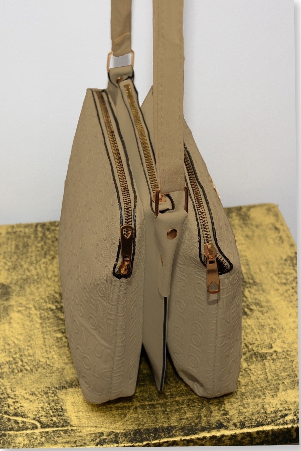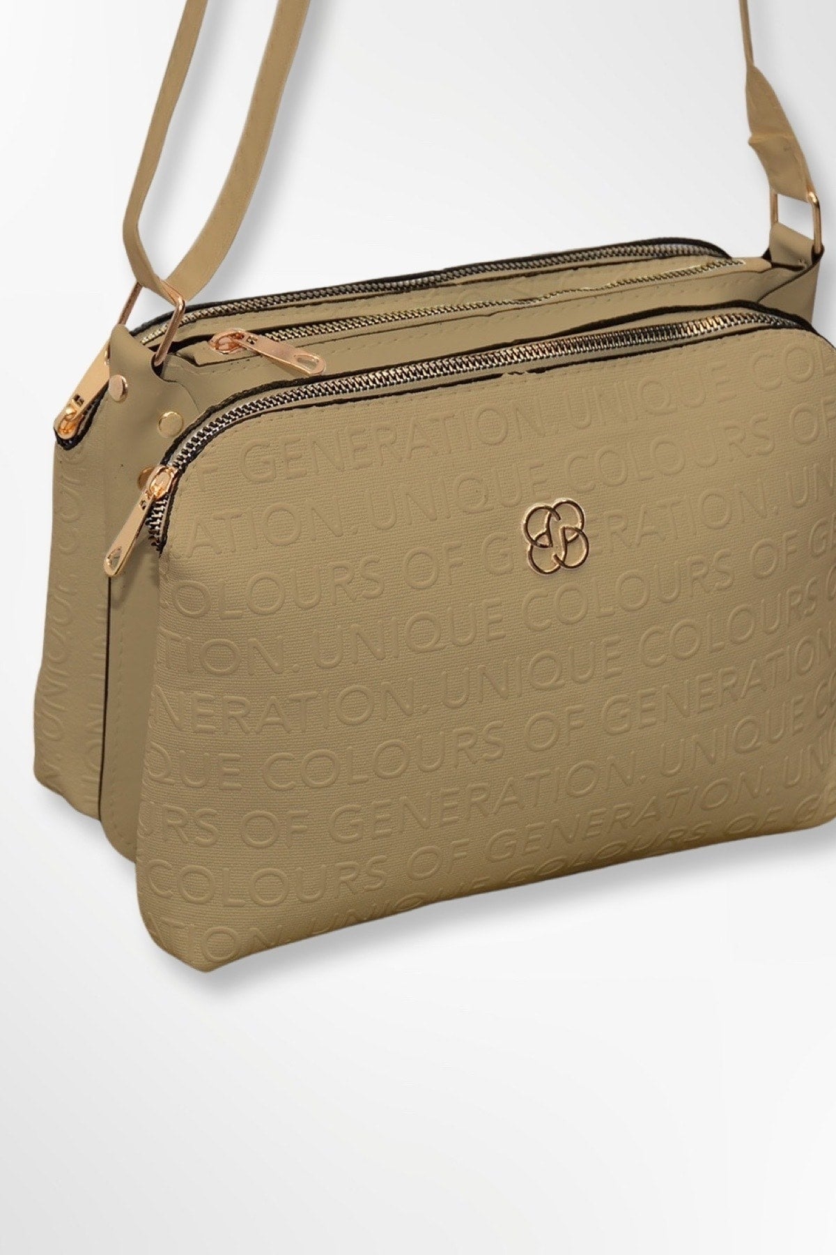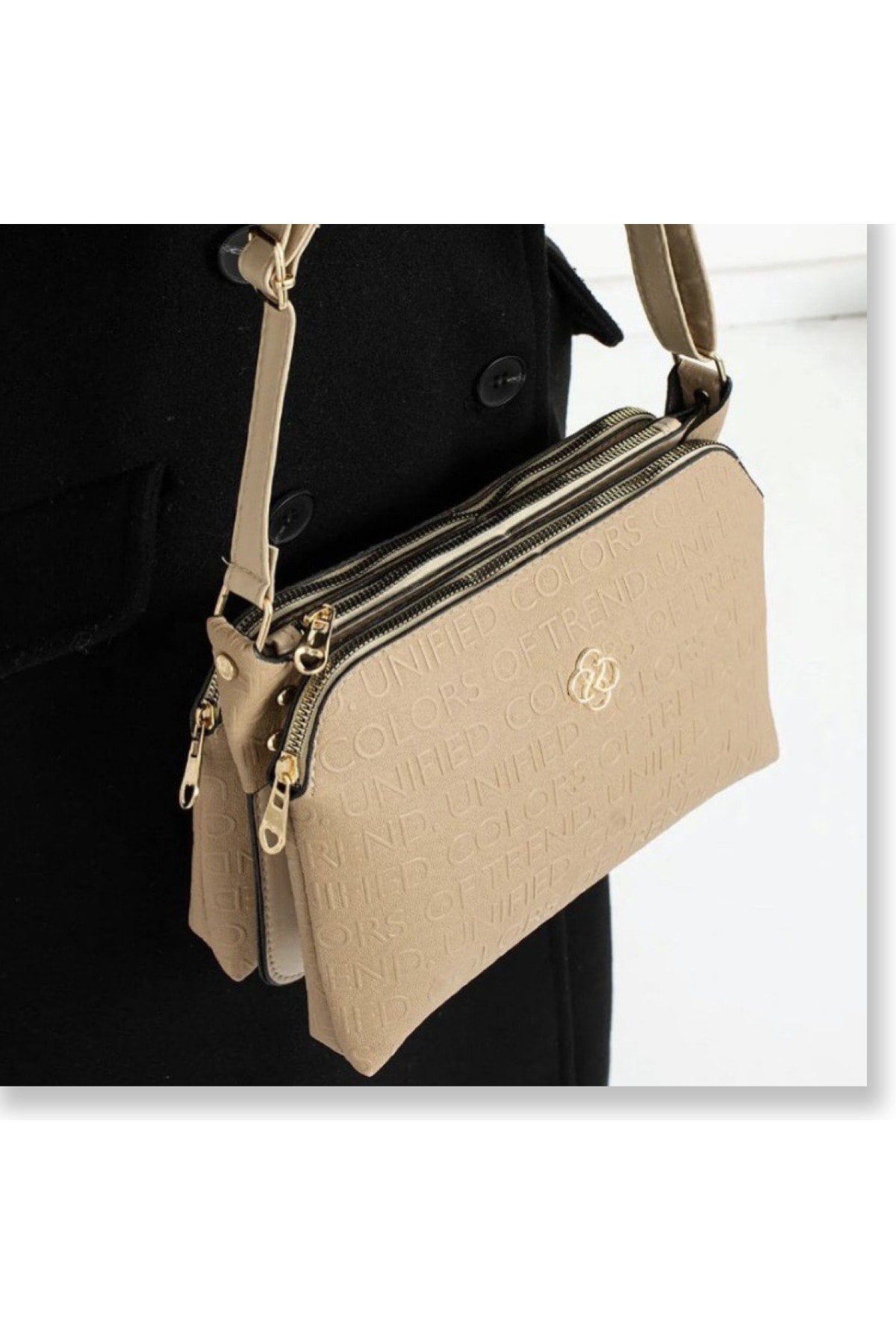 حقيبة جوجوس كانتا النسائية ذات الثلاثة أقسام من فرو المنك وحزام الكتف المتقاطع، متوسطة الحجم