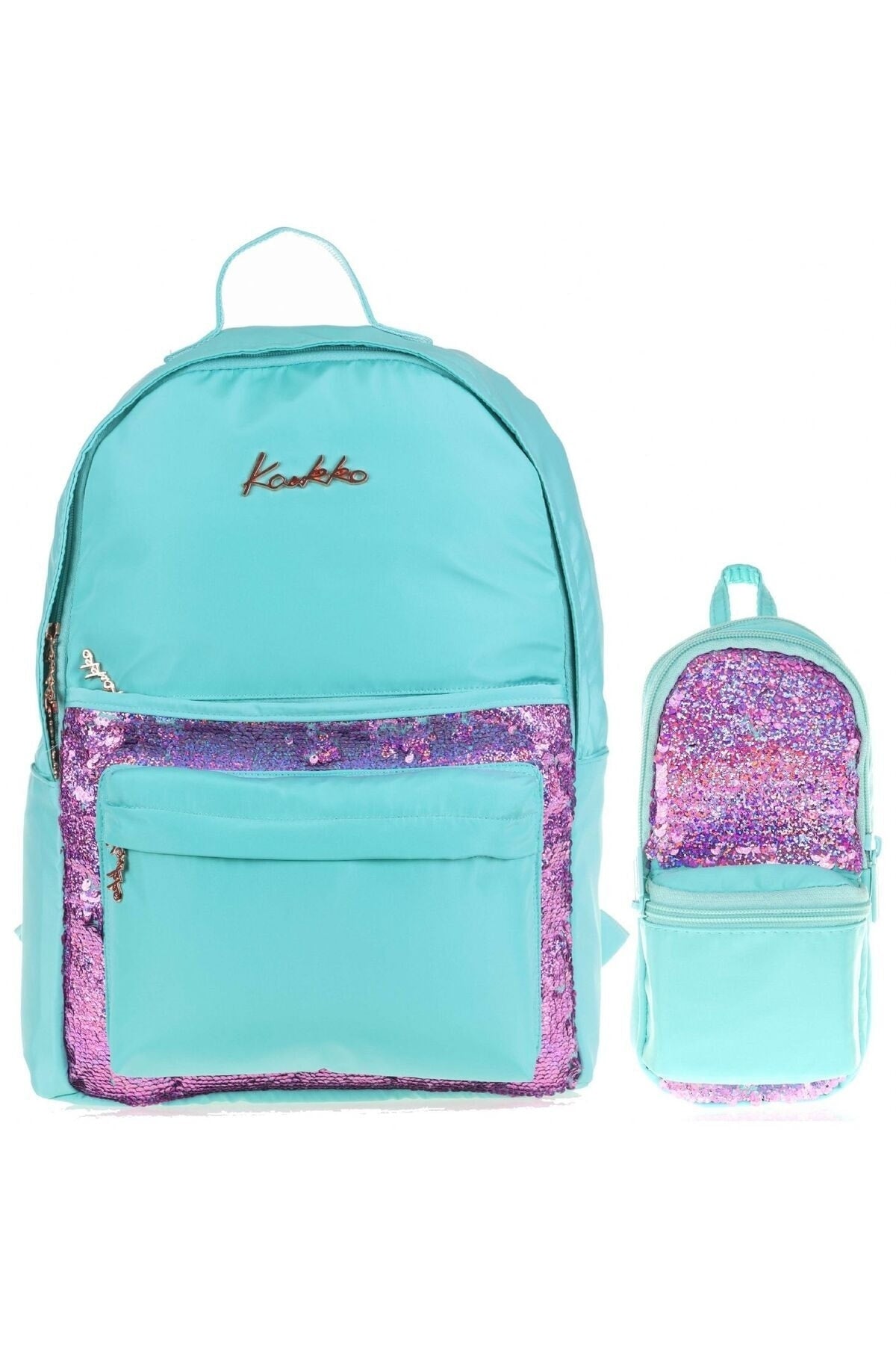 Mint Sequin School Bag And Pencil Holder Set - Girls