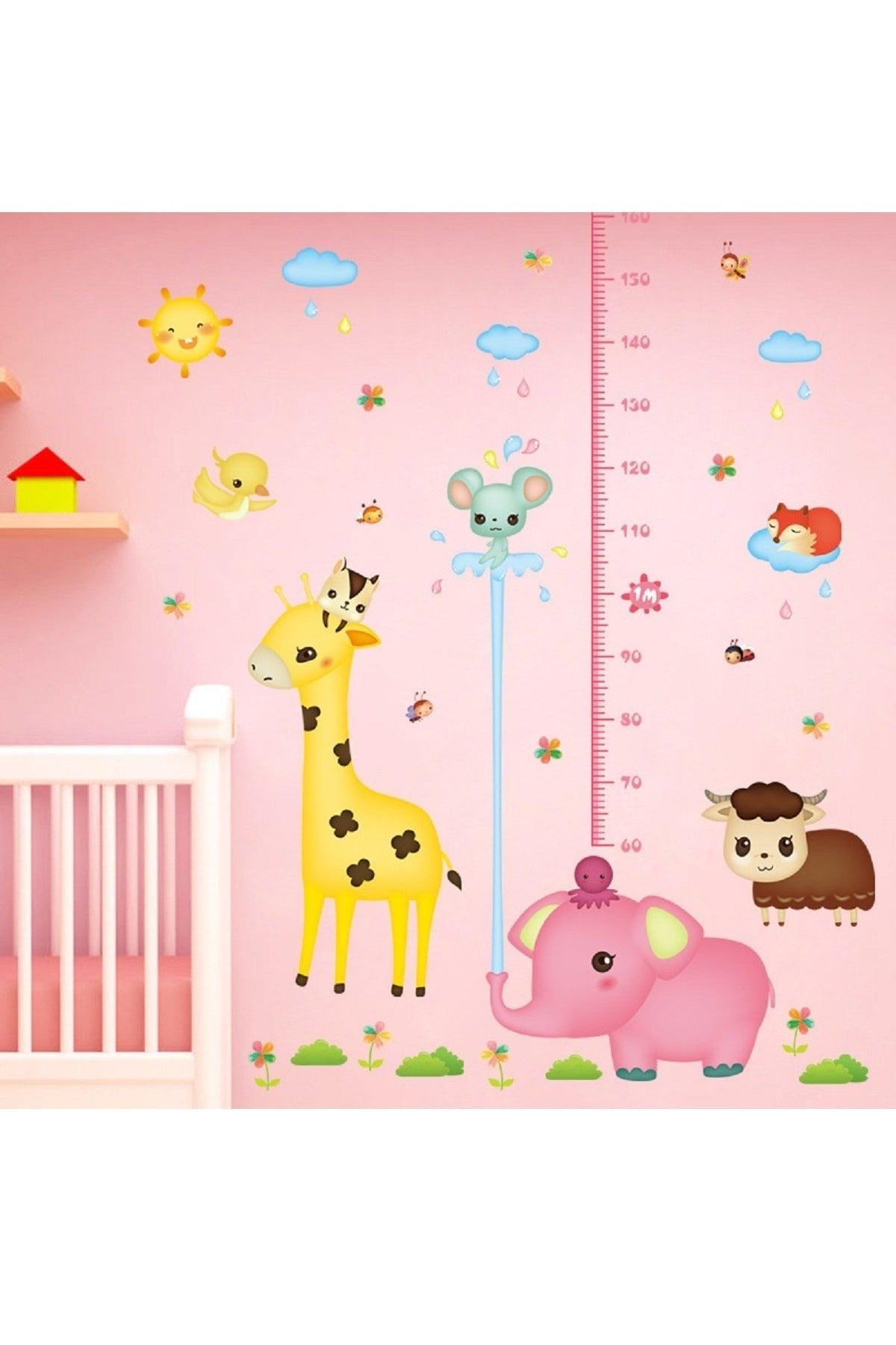 Cute Elephant Giraffe Sheep Kids Room Height Measuring Chart Wall Sticker