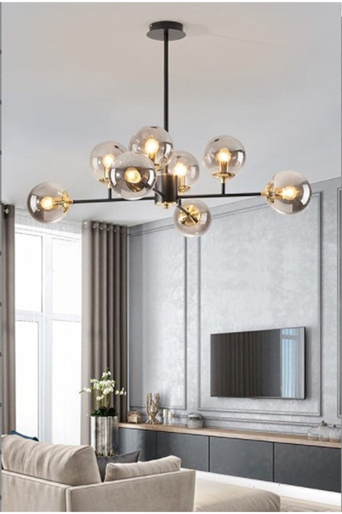 Nida 8 Li Schwarzer antiker Plafonier-Kronleuchter aus Rauchglas