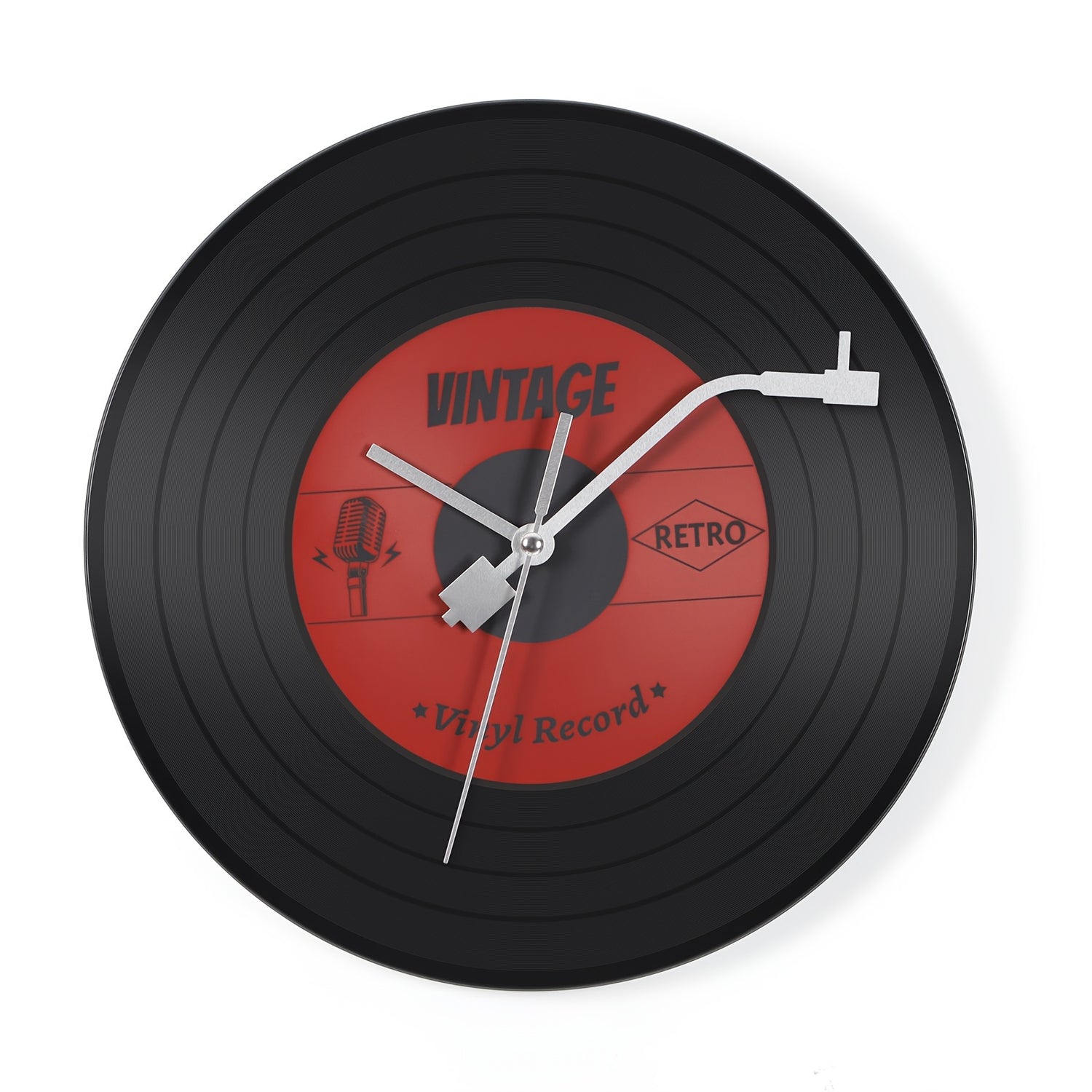 12 Inch Musical Black Vinyl Record Wall Clock, Battery Powered, Music Room Art Deco Wall Clock