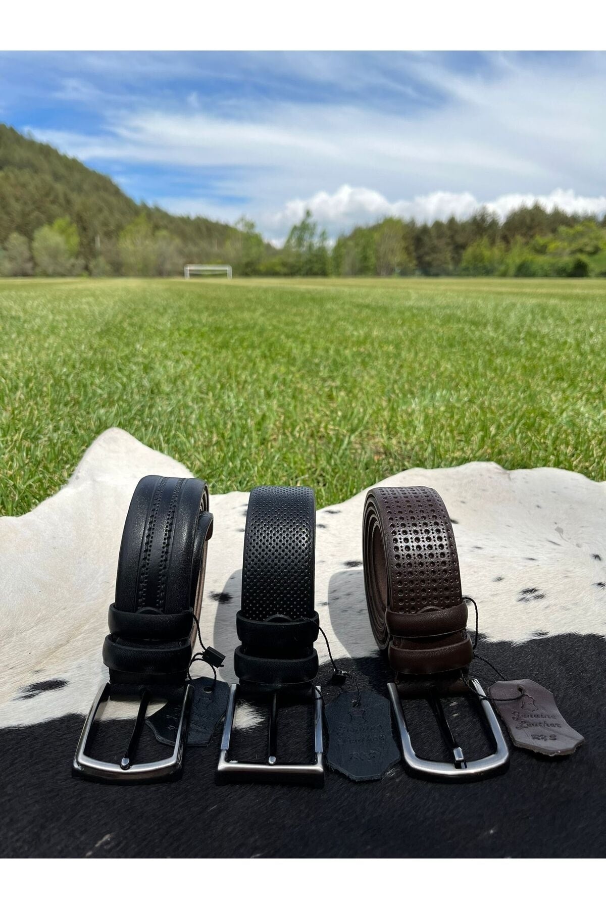 100 % echter, schwarzer, gemusterter 3,5-cm-Herrenledergürtel
