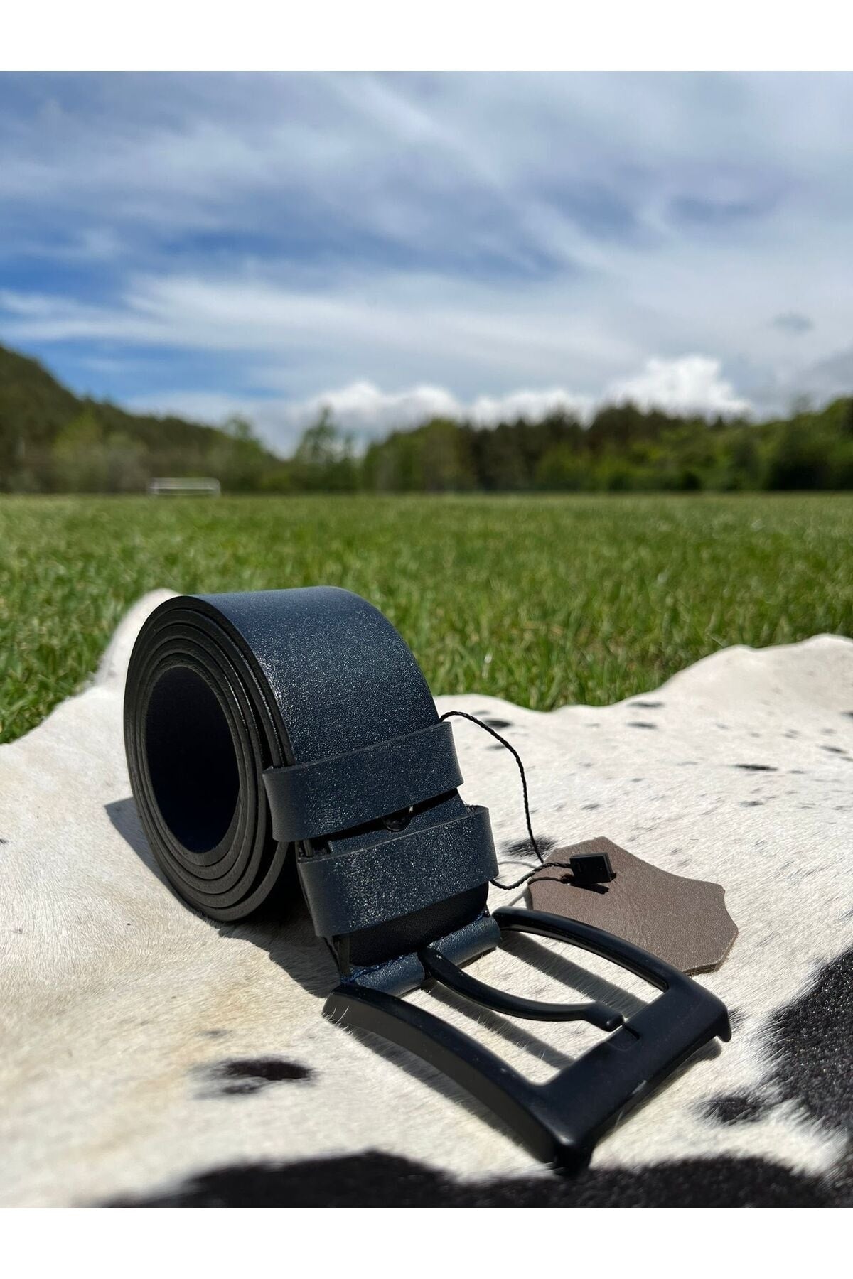 100 % echter marineblauer 4,5 cm Herren-Ledergürtel