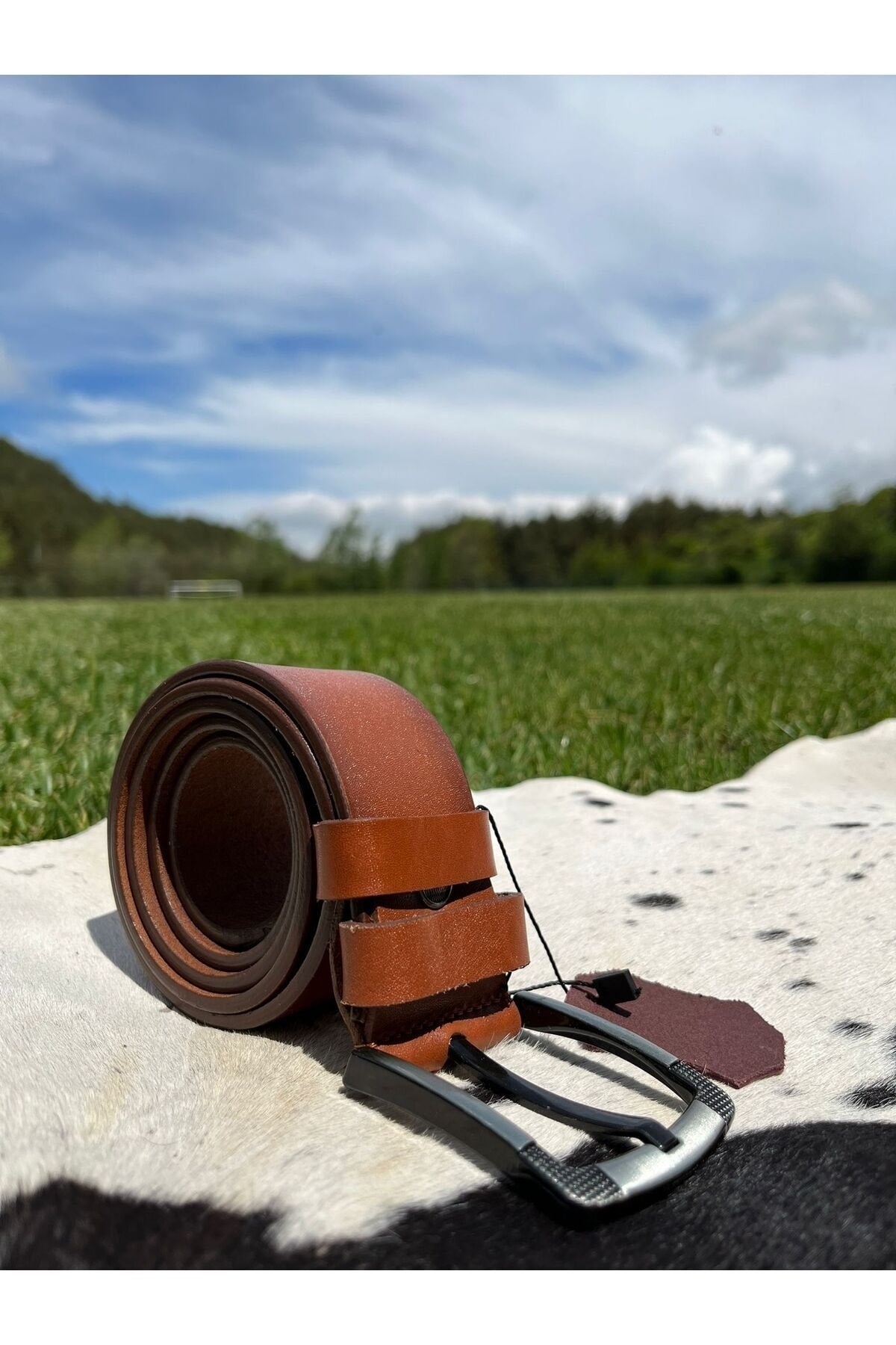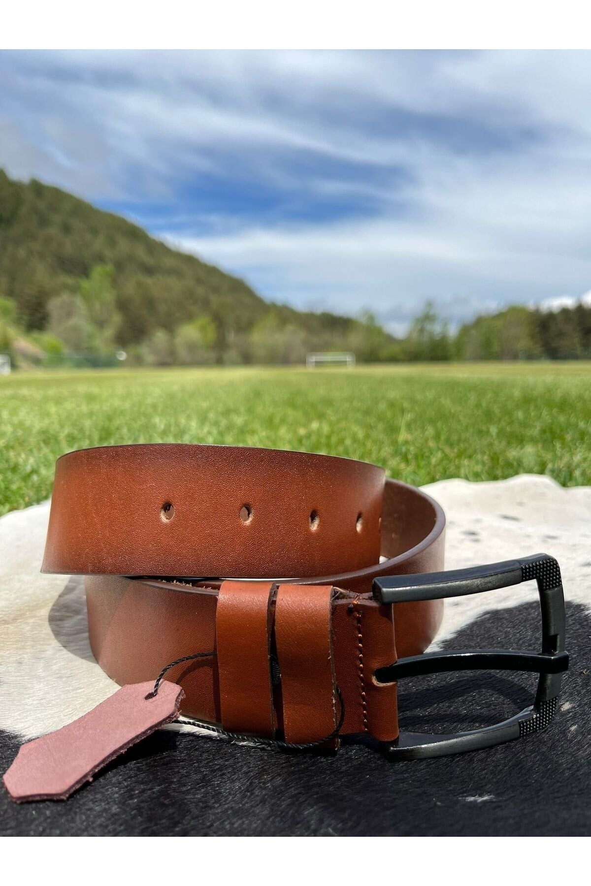 100 % echter, 4,5 cm langer Herren-Ledergürtel mit eingebranntem Band