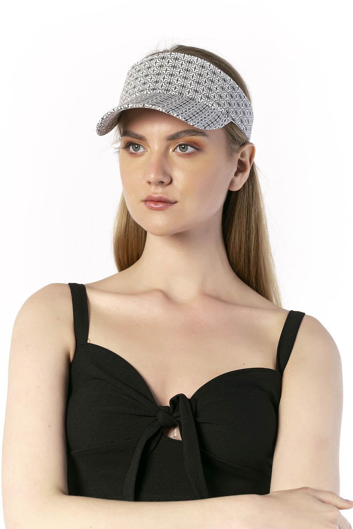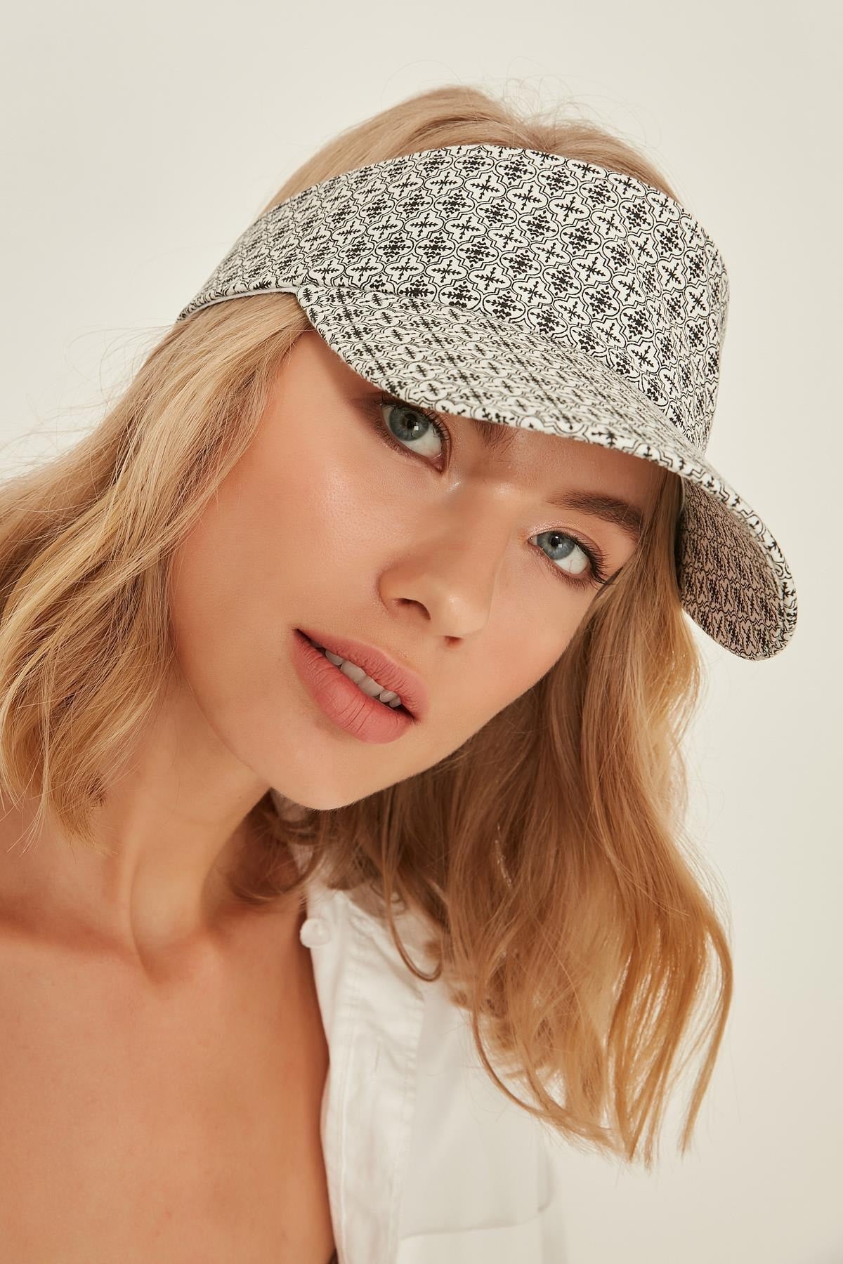 14048 UV-geschützter weißer Schirmhut mit ethnischem Muster und offener Oberseite