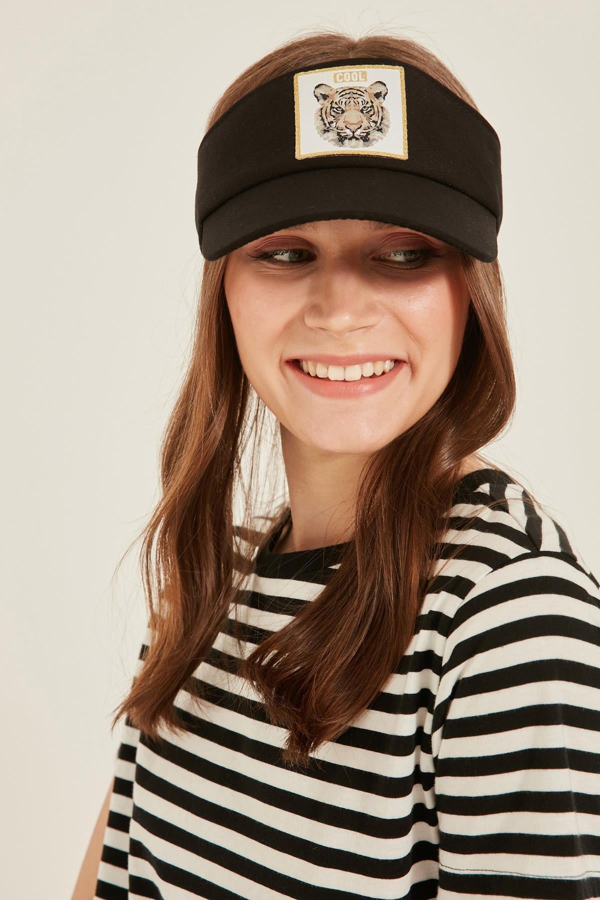 14096 Schwarze Schirmmütze mit Tigerwappen