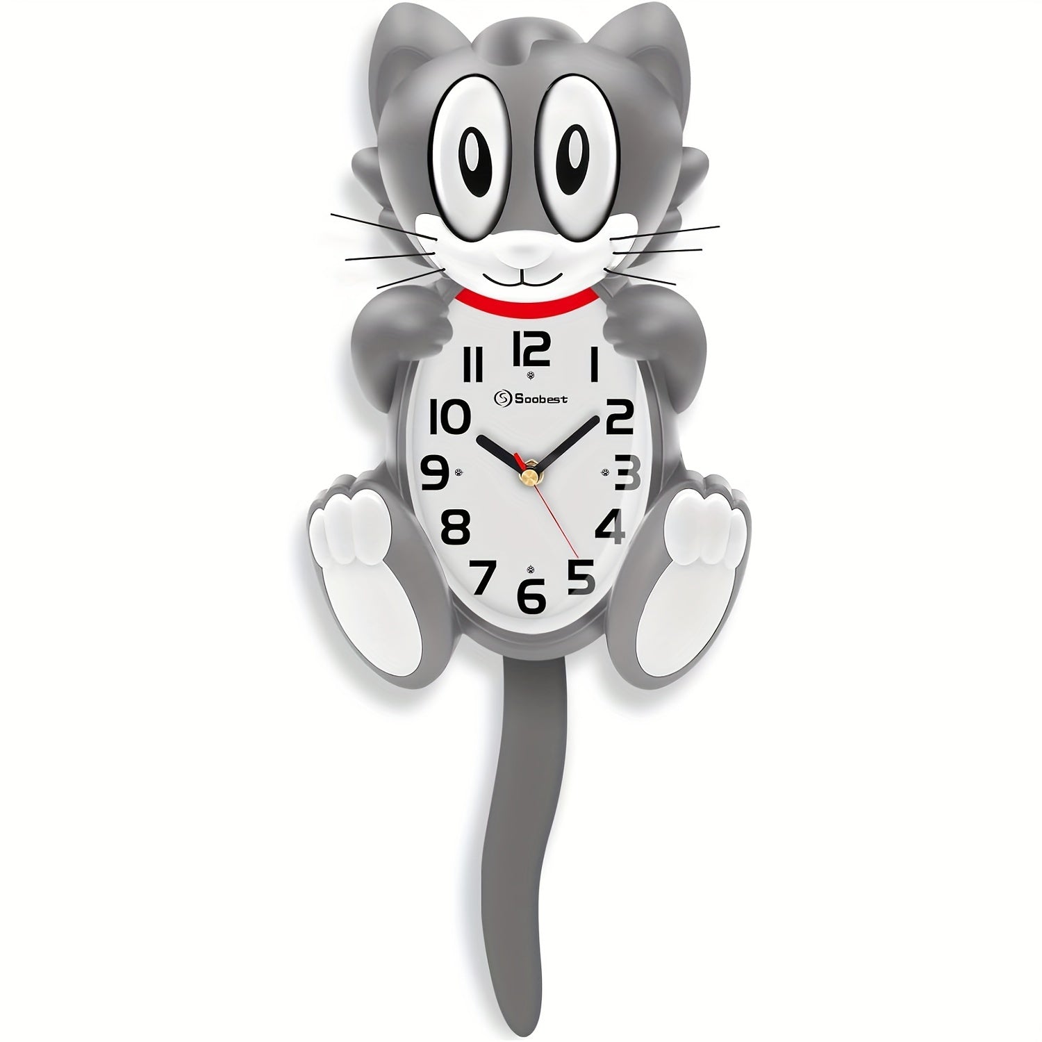 18-Inch Large 3D Cat Wall Clock with Moving Eyes & Swinging Tail - Silent, Battery-Powered Retro Analog Clock for Living Room Decor