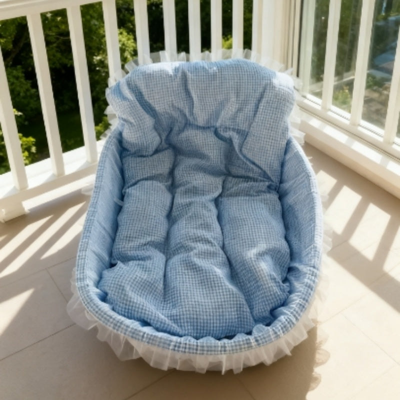 1pc Cute Lace-Trimmed Pet Princess Bed for Small Dogs & Cats - Soft Oval Plush Cushioned Dog Bed with Easy Assembly, Cozy Indoor Comfort, Plaid Pattern, Decorative Pet Furniture
