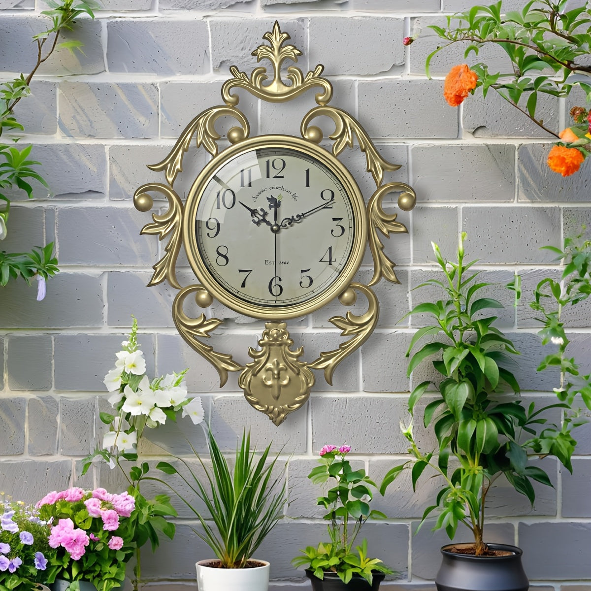 1pc, Golden Retro Glass Wall Clock, Silenting, Idyllic Garden Decoration, Modern Fashion And Creative Timepiece For Outdoor And Indoor Use