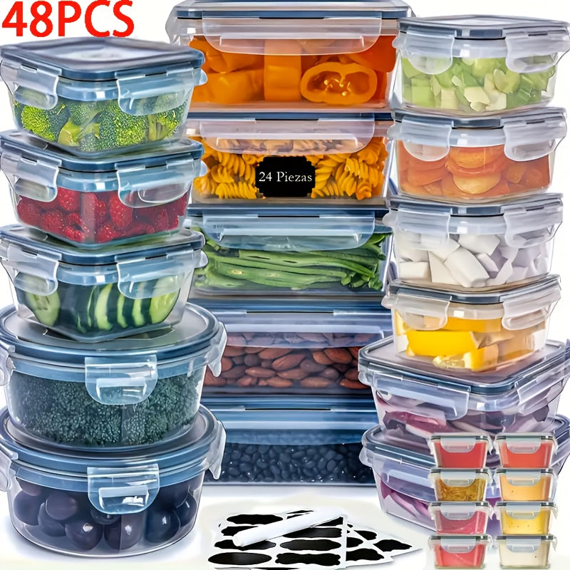 24/48Pcs Food Storage Containers Set Kitchen Organizers Meal Prep Container Airtight, BPA-Free Stackable Reusable Snack Lunch Containers, Easy-Snap Lids, Plastic Snapware(12/24Containers+12/24 Lids) With Free Labels And Marker