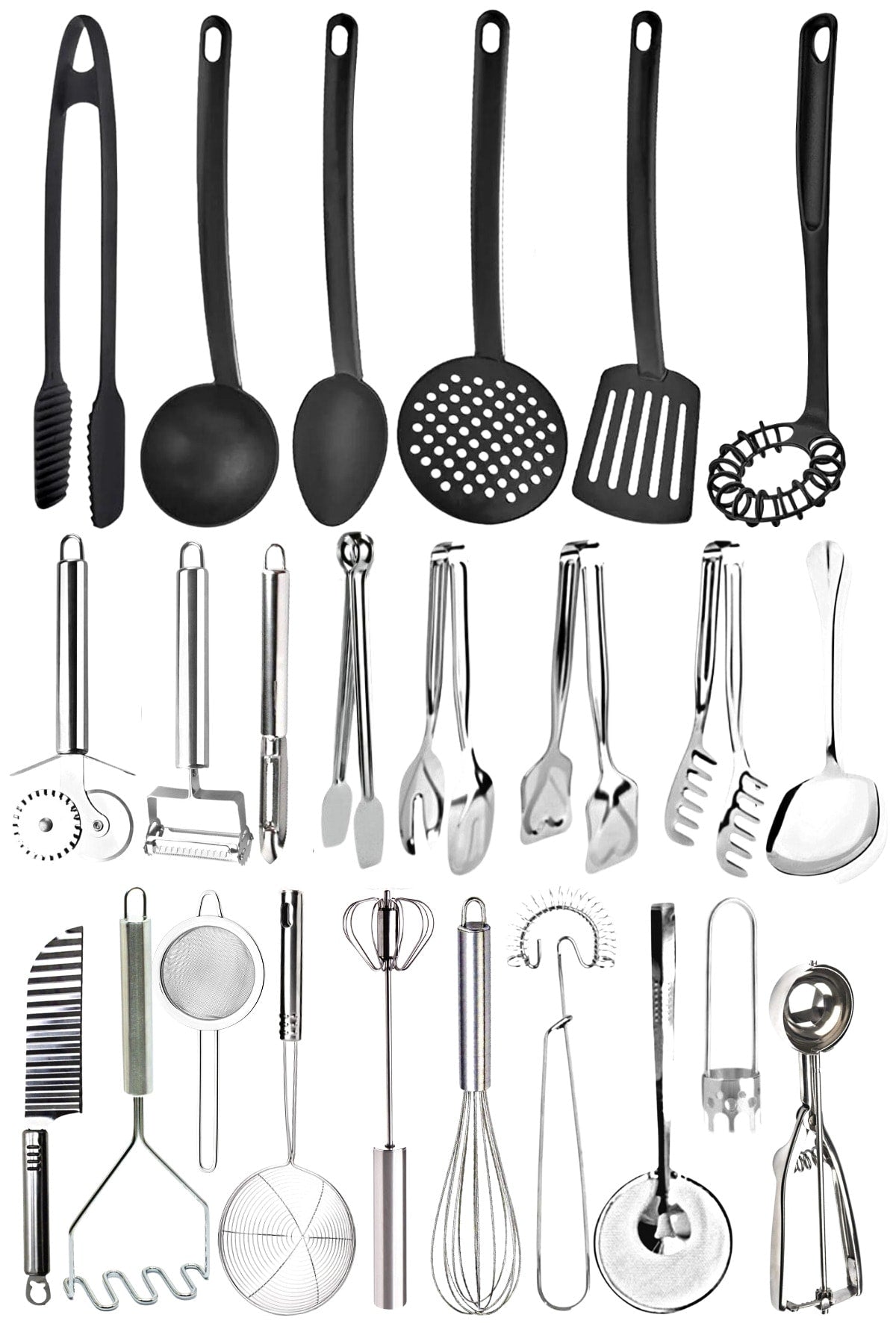 24-teiliges Schöpflöffel-Spatel-Sieb-Küchen-Servierset, Servierutensilien, Servierzangen-Set, Küchenprodukte
