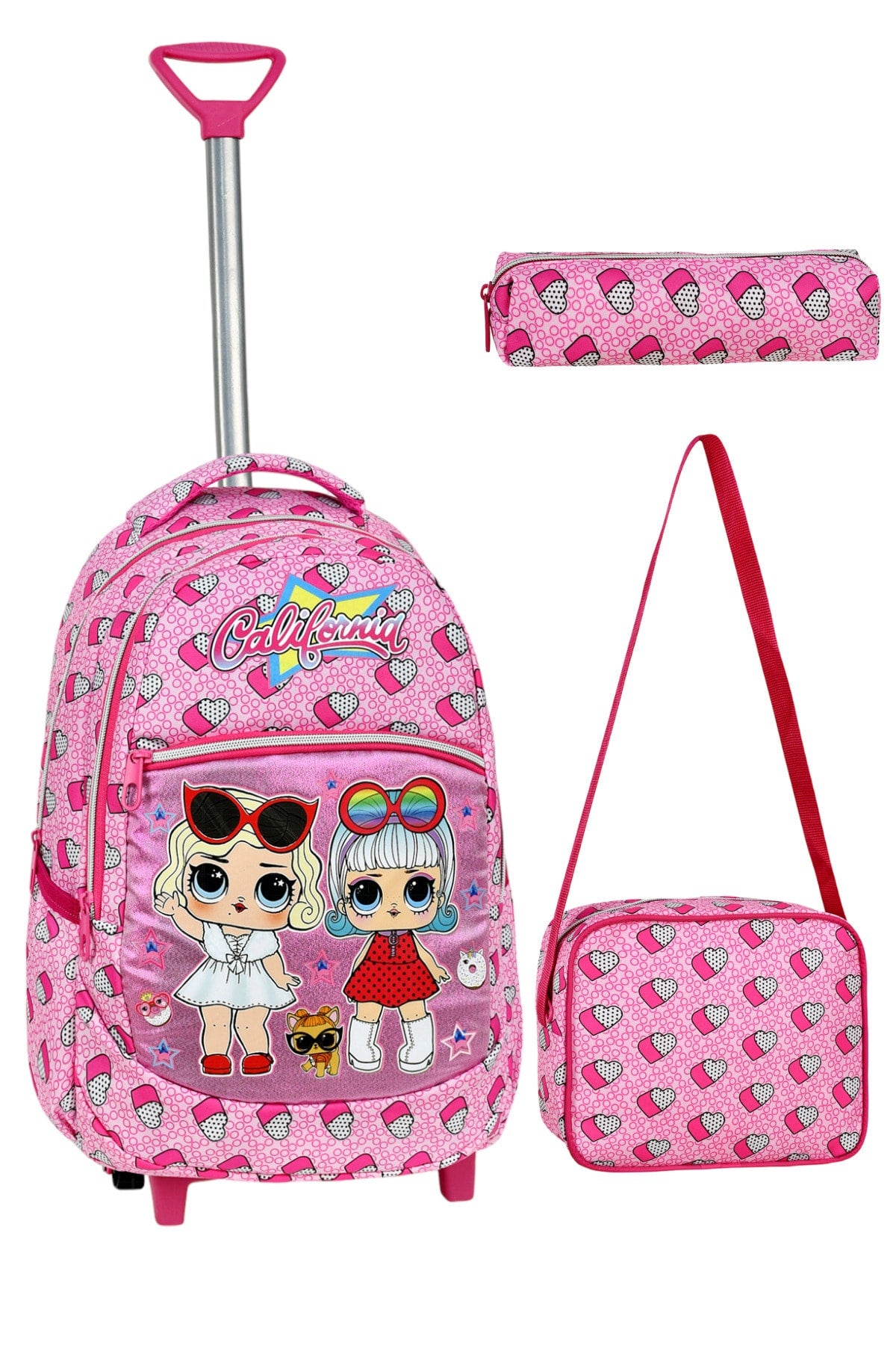 3er-Pack wasserdichte Grundschultasche für Mädchen mit Herzmuster, mit Abzieher und Stifthalter