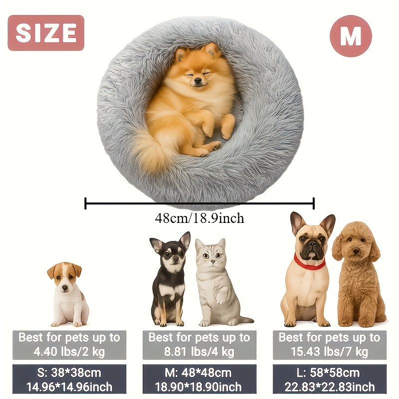 3 Sizes Available Macaron Donut Deep Sleep Bed, High Resilience Non-Collapse Material for Cats and Dogs, Soft Comfortable Faux Plush New Luxury Cozy Pet Pillow Mattress with